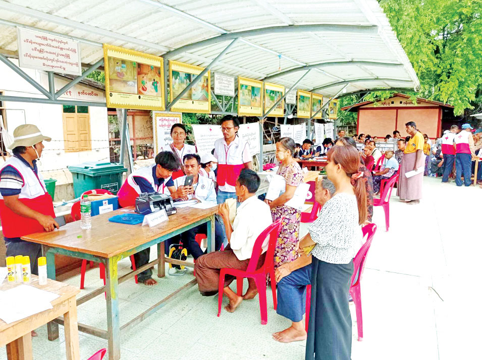မန္တလေးတိုင်းဒေသကြီး သာစည်မြို့နယ်၌ မြန်မာနိုင်ငံ ကြက်ခြေနီအသင်းက မန္တလေးငလျင်ကြီးဘေး တုံ့ပြန်ရေးနှင့် ပြန်လည်ထူထောင်ရေး ထောက်ပံ့မှုအစီအစဉ်ဖြင့် ငလျင်ဘေးသင့် အိမ်ထောင်စု ၂၈၆ စုတို့အား ထောက်ပံ့ငွေ ပေးအပ်ခြင်းကို စက်တင်ဘာ ၂၃ ရက်က အမှတ် (၇) ရပ်ကွက် နဘဲရွှေထီးဘုရားဝင်းအတွင်း၌ ပြုလုပ်သည်။