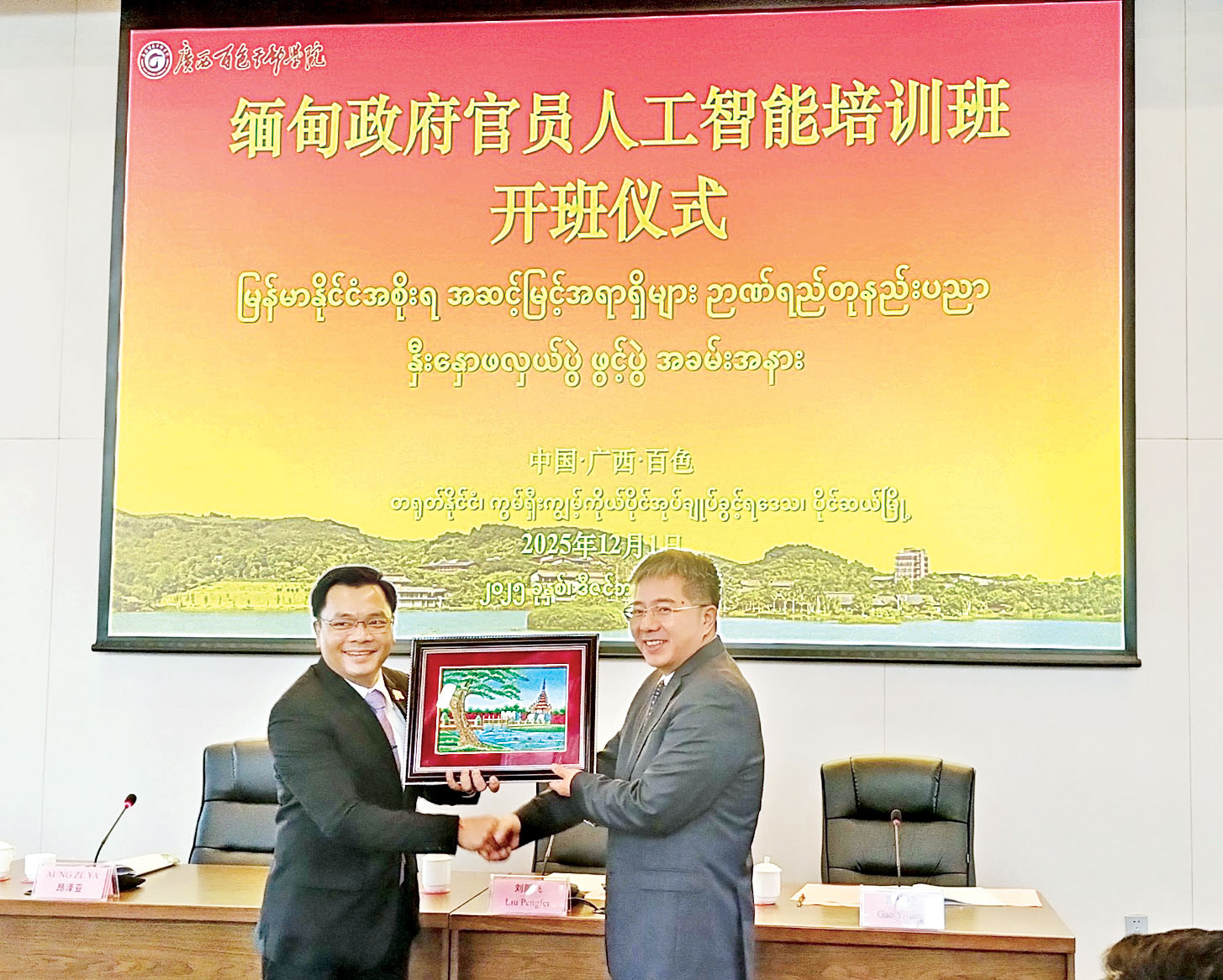 ဟောပြောပွဲတွင် ကွမ်ရှီးကျွမ့် ကိုယ်ပိုင်အုပ်ချုပ်ခွင့်ရဒေသ ပြည်သူ့အစိုးရ ဒုတိယအထွေထွေ အတွင်းရေးမှူးနှင့် တရုတ်-အာဆီယံ သတင်းအချက်အလက် ဆိပ်ကမ်း တည်ဆောက်ရေးရုံး ညွှန်ကြားရေးမှူးချုပ် Mr. Zhao Zhigang က တရုတ်နိုင်ငံ၏ AI ဆန်းသစ် တီထွင်မှုများနှင့် လူတိုင်း အကျိုးခံစားရေး အစီအစဉ်၊ ကွမ်ရှီး AI ဖွံ့ဖြိုးမှုနှင့် လက်တွေ့ ဆောင်ရွက်မှုများ၊ မြန်မာနိုင်ငံနှင့် AI ပူးပေါင်းဖွံ့ဖြိုးရေး အကြံပြုချက်များ၊ လာအိုနှင့် ဗီယက်နမ် နိုင်ငံတို့အတွက် အမျိုးသားအဆင့် AI မော်ဒယ် တည်ဆောက်ခဲ့မှုများ၊ အလားတူ အင်ဒိုနီးရှား၊ မလေးရှား၊ ကမ္ဘော ဒီးယားနိုင်ငံတို့နှင့် တည်ဆောက်နေမှု၊ တရုတ် AI မော်ဒယ်များ၏ အတွေးအခေါ်စနစ်၊ AI ဖွံ့ဖြိုးမှုနှင့် ယဉ်ကျေးမှု ရှင်သန်ရေးပြဿနာ၊ တရုတ်-အာဆီယံ ဉာဏ်ရည်တု နည်းပညာအသုံးချမှု ပူးပေါင်း ဆောင်ရွက်ရေးစင်တာ တည်ထောင်ခြင်း၊ AI ဖွံ့ဖြိုးရေးမဟာ ဗျူဟာနှင့် စီမံခန့်ခွဲမှုအခြေအနေများ၊ ကွမ်ရှီးဒစ်ဂျစ်တယ်အရင်း အမြစ်စုစည်းမှုနှင့် ဒစ်ဂျစ်တယ် အစိုးရ စီမံခန့်ခွဲမှုစနစ်ဖွဲ့စည်းပုံ၊ မြောက်ပိုင်းပင်လယ်ကွေ့ဒေတာ ဈေးကွက်ဗဟိုဌာန၊ ကွမ်ရှီးဒေတာ ထုတ်ကုန်စာရင်း၊ တရုတ်-အာဆီယံ ဥပဒေဆိုင်ရာမော်ဒယ်၊ ဒစ်ဂျစ်တယ်အစိုးရထူထောင်ရေး ပူးပေါင်းဆောင်ရွက်ခြင်း၊ အရည် အသွေးမြင့် ဒေတာစနစ်၏အခြေခံ အုတ်မြစ်ကို ပူးပေါင်းတည် ဆောက်ခြင်း၊ နယ်စပ်ဖြတ်ကျော်၍ ဒေတာနှင့် စက်မှုလုပ်ငန်းများ ပူးပေါင်း ဆောင်ရွက်ခြင်းတို့ကို ဟောပြောဆွေးနွေးရာ ဒုတိယ ဝန်ကြီးက မြန်မာနိုင်ငံရှိ AI အပါအဝင် ဒစ်ဂျစ်တယ်နည်းပညာ ဖွံ့ဖြိုးတိုးတက်ရေး ဆောင်ရွက် ထားရှိမှုများကို ပြန်လည်ဆွေးနွေးခဲ့ပြီး မြန်မာကိုယ်စားလှယ်အဖွဲ့ ဝင်များက သိရှိလိုသည်များကို မေးမြန်းခဲ့ကြကြောင်း သိရသည်။