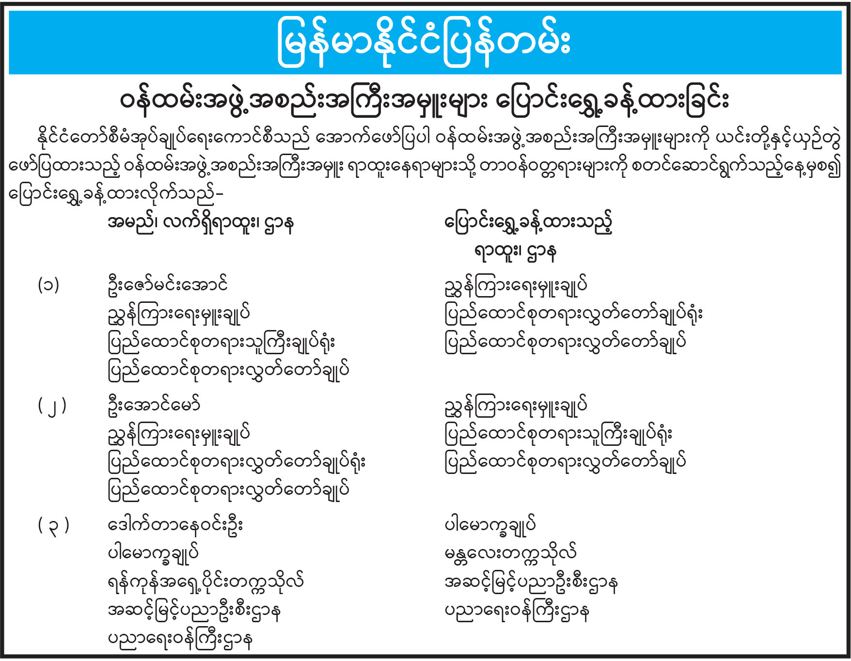 ပြည်ထောင်စုသမ္မတမြန်မာနိုင်ငံတော် ၂၀၂၅ ခုနှစ် ပါတီစုံဒီမိုကရေစီ အထွေထွေရွေးကောက်ပွဲ အပိုင်း(၂)တွင် ပါဝင်ဆန္ဒမဲပေးနေကြသည့် မဲဆန္ဒရှင်ပြည်သူများအား မဲရုံများအလိုက် လိုက်လံကြည့်ရှုအားပေး