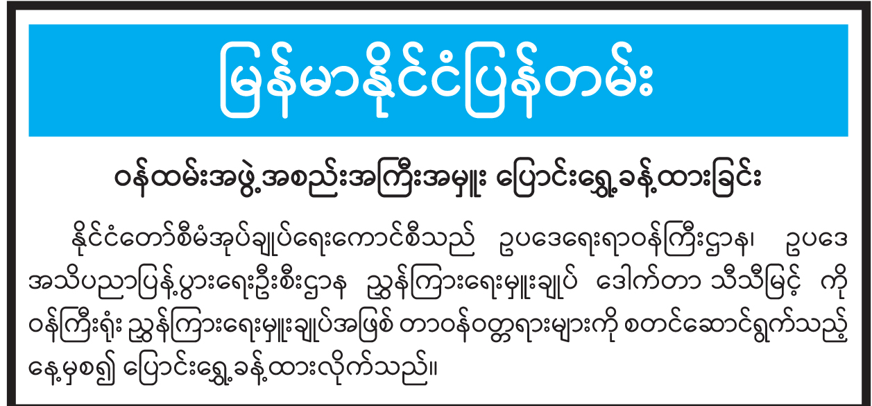 နိုင်ငံတည်ငြိမ်အေးချမ်းပြီး တရားဥပဒေစိုးမိုးမှုရှိစေရေး မိမိတို့အနေဖြင့် ဒီမိုကရေစီနည်းလမ်းဖြင့် ဆောင်ရွက်လျက်ရှိ တည်ငြိမ်အေးချမ်းပြီး တရားဥပဒေစိုးမိုးမှုရှိမှသာ ပြည်သူများ အလုပ်အကိုင်များ အဆင်ပြေချောမွေ့ပြီး နိုင်ငံဖွံ့ဖြိုးတိုးတက်လာမည်
