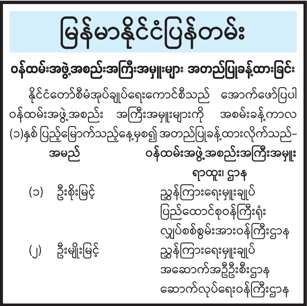 နိုင်ငံတည်ငြိမ်အေးချမ်းပြီး တရားဥပဒေစိုးမိုးမှုရှိစေရေး မိမိတို့အနေဖြင့် ဒီမိုကရေစီနည်းလမ်းဖြင့် ဆောင်ရွက်လျက်ရှိ တည်ငြိမ်အေးချမ်းပြီး တရားဥပဒေစိုးမိုးမှုရှိမှသာ ပြည်သူများ အလုပ်အကိုင်များ အဆင်ပြေချောမွေ့ပြီး နိုင်ငံဖွံ့ဖြိုးတိုးတက်လာမည်