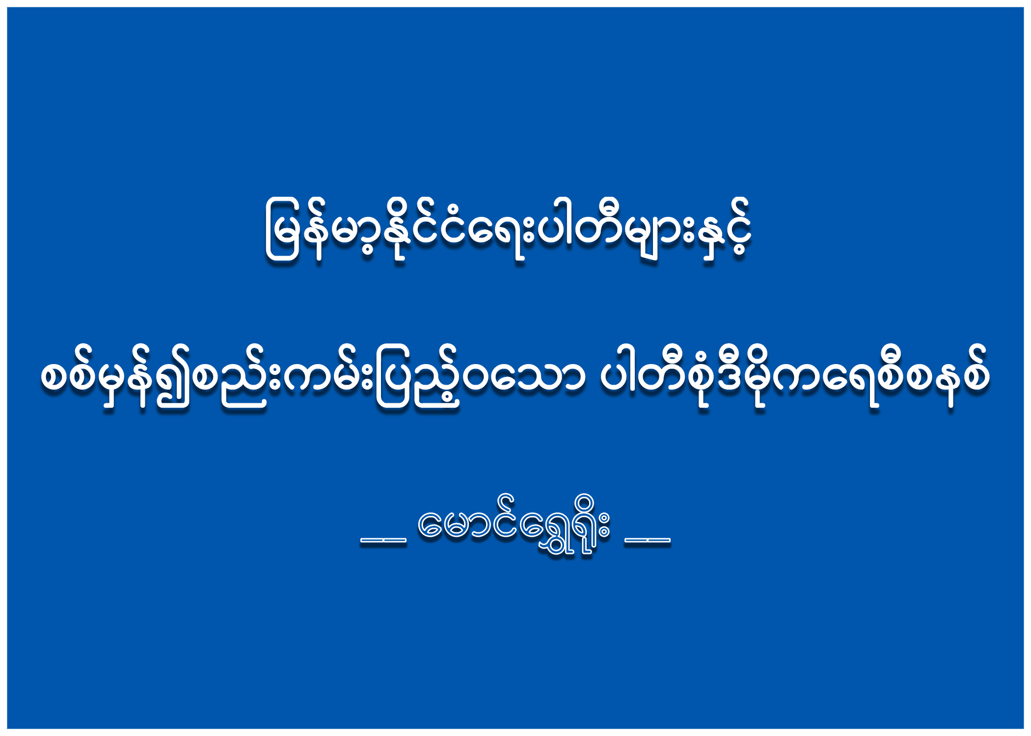 နိုင်ငံရေးပါတီများသည် နိုင်ငံတော်၏ ဥပဒေ ပြုရေး၊ အုပ်ချုပ်ရေးနှင့် တရားစီရင်ရေးကဏ္ဍများတွင် ပြည်သူကို ကိုယ်စားပြုပြီး တိုင်းပြည်တာဝန်များကို ဦးဆောင်ဦးရွက်ပြုကြရမည့်သူများဖြစ်ပါသည်။ ခိုင်မာ အားကောင်းသည့် နိုင်ငံရေးပါတီများ ဖြစ်စေရန် တစ်နိုင်ငံလုံးစည်းရုံးဆောင်ရွက်မည့် ပါတီဖြစ်ပါက တစ်နိုင်ငံလုံးနှင့်လျော်ညီစွာ ပါတီဝင် အင်အား၊ ပါတီရန်ပုံငွေ၊ နိုင်ငံရေးပါတီရုံးခွဲများ ရှိရန်လိုအပ်ပါသည်။ ရွေးကောက်ပွဲတွင်လည်း သတ်မှတ်ထားသည့် မဲဆန္ဒနယ်အရေအတွက်ကို ဝင်ရောက်ယှဉ်ပြိုင်ရန်လိုအပ်ပါသည်။ ထို့အတူ တိုင်းဒေသကြီး သို့မဟုတ် ပြည်နယ်တစ်ခု အတွင်း၌သာ စည်းရုံးမည့်ပါတီဖြစ်ပါက တိုင်းဒေသကြီး သို့မဟုတ် ပြည်နယ်အတွင်း စည်းရုံးမည့်ပါတီနှင့် အညီ ပါတီဝင်အင်အား၊ ပါတီရန်ပုံငွေ၊ နိုင်ငံရေးပါတီ ရုံးခွဲများ ရှိရန်လိုအပ်ပါသည်။ ရွေးကောက်ပွဲတွင် လည်း သတ်မှတ်ထားသည့်မဲဆန္ဒနယ် အရေအတွက်ကို ဝင်ရောက်ယှဉ်ပြိုင်ရန် လိုအပ်ပါသည်။ နိုင်ငံရေး ပါတီများအနေဖြင့် မိမိကိုယ်တိုင် ခိုင်ခိုင်မာမာ ရပ်တည်ဖွဲ့စည်းနိုင်မှသာ တိုင်းပြည်အကျိုး၊ ပြည်သူများ၏အကျိုးကို ဆောင်ရွက်ပေးနိုင်မည် ဖြစ်ပါသည်။ ပြည်ထောင်စုရွေးကောက်ပွဲကော်မရှင် အနေဖြင့် ရေရှည်အကျိုးကိုမျှော်ကိုးပြီး တိုင်းပြည်အတွက်၊ အများပြည်သူလူထုအတွက် စည်းကမ်းပြည့်ဝသော ပါတီစုံဒီမိုကရေစီစနစ်ကို အကောင်အထည်ဖော်ရာတွင် ပြဋ္ဌာန်းဥပဒေများနှင့် အညီ တိတိကျကျ မှန်မှန်ကန်ကန် ဆောင်ရွက်သွားရမည် ဖြစ်ပါသည်။