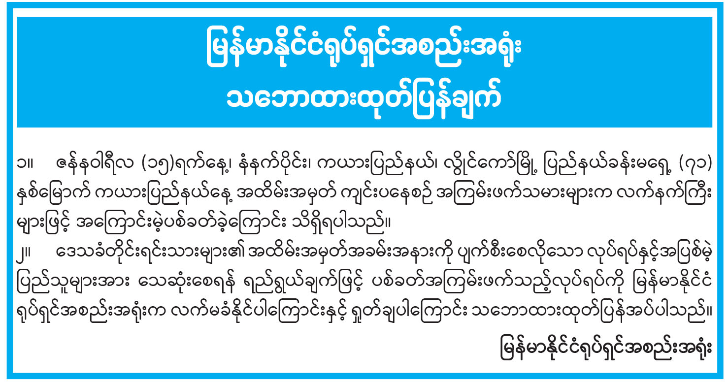 မြန်မာနိုင်ငံရုပ်ရှင်အစည်းအရုံး သဘောထားထုတ်ပြန်ချက်