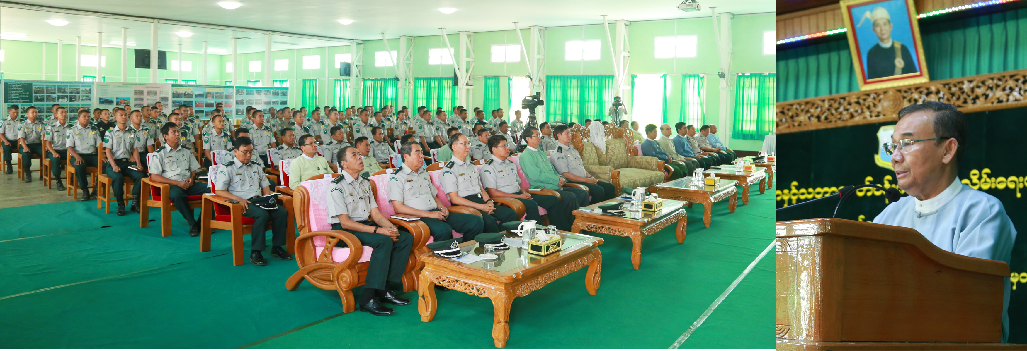 အခမ်းအနားတွင် ပြည်ထောင်စုဝန်ကြီးက အစဉ်အလာကောင်းရှိခဲ့သည့် ကျောင်း ၏ ဂုဏ်ကို သင်တန်းသားတစ်ဦးချင်းစီ၏ ကြိုးစားအားထုတ်မှုနှင့် ဆက်လက် ထိန်းသိမ်း ကြရန်၊ ဝန်ထမ်းစည်းမျဉ်းစည်းကမ်း၊ ကျောင်းစည်းကမ်းများနှင့် အကျင့်စာရိတ္တ ကောင်းမွန်အောင် လိုက်နာကြရန်၊ သင်တန်းတွင် ထူးချွန်ဆုများရရှိအောင် ကောင်းသော ယှဉ်ပြိုင်ခြင်းဖြင့် အပြိုင်အဆိုင် ကြိုးစားကြရန်၊ စာတွေ့၊ လက်တွေ့ထူးချွန်အောင် ကြိုးစားကြရန်၊ ဝန်ကြီးဌာနအောက်ရှိ ဌာနအသီးသီး၏ အရည်အချင်းပြည့်ဝသည့် ခေါင်းဆောင်ငယ်များအဖြစ် တာဝန်ထမ်းဆောင်နိုင်ရေး ဦးတည်ဆောင် ရွက်သွားကြရန်၊ စွမ်းဆောင်ရည် ထက်မြက်သည့် ဝန်ထမ်းကောင်းများ ဖြစ်အောင် စဉ်ဆက်မပြတ် လေ့လာ သင်ယူဆည်းပူးကြရန်၊ နိုင်ငံတော်နှင့် အမျိုးသားအကျိုးစီးပွားကို အစဉ်ထာဝရ ဖော်ဆောင်နိုင်သည့် ရိုးသားကြိုးစားသည့် ဝန်ထမ်းကောင်းများဖြစ်အောင် ကြိုးပမ်း ဆောင်ရွက်သွားကြရန် ပြောကြားသည်။