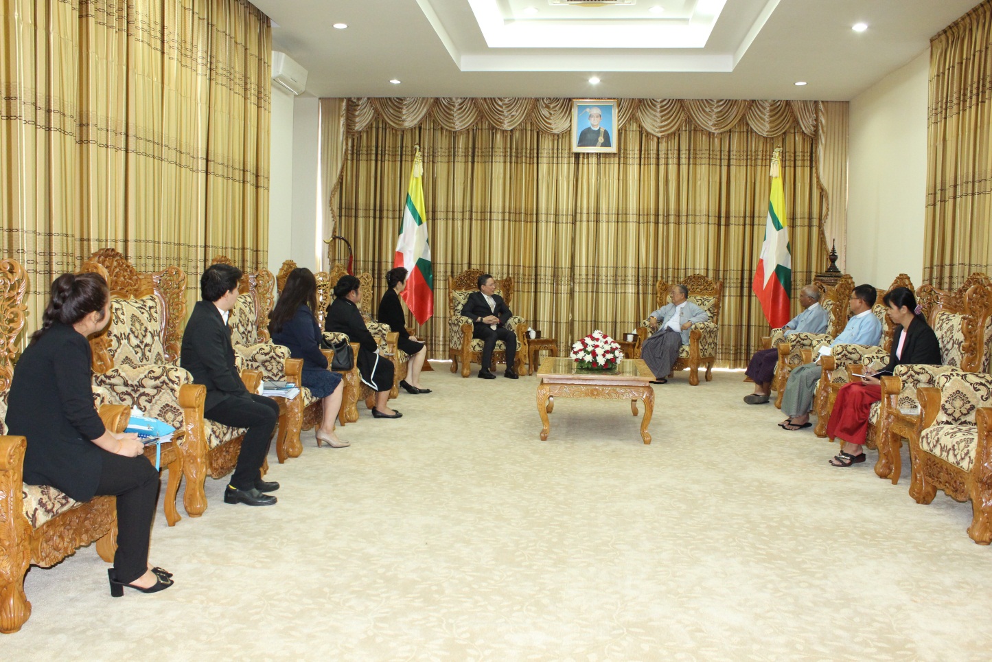 မြန်မာနိုင်ငံတော်ဗဟိုဘဏ်၊ ဥက္ကဋ္ဌဦးကျော်ကျော်မောင်သည် Krungthai Bank မှ President & CEO ၊ Mr. PayongSrivanich၊ နှင့် ကိုယ်စားလှယ်အဖွဲ့အားယနေ့နံနက် ၁၁ နာရီတွင် နေပြည်တော်ရှိ မြန်မာနိုင်ငံတော်ဗဟိုဘဏ်၊ ကံ့ကော်ခန်းမ၌ တွေ့ဆုံဆွေးနွေးသည်။