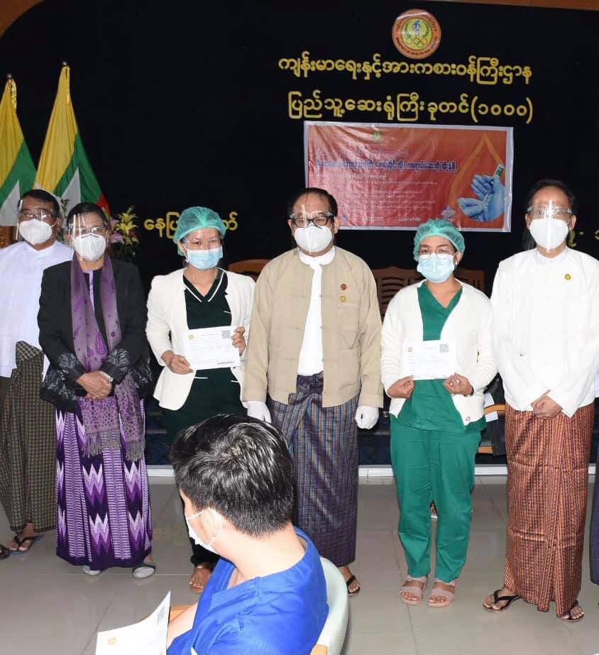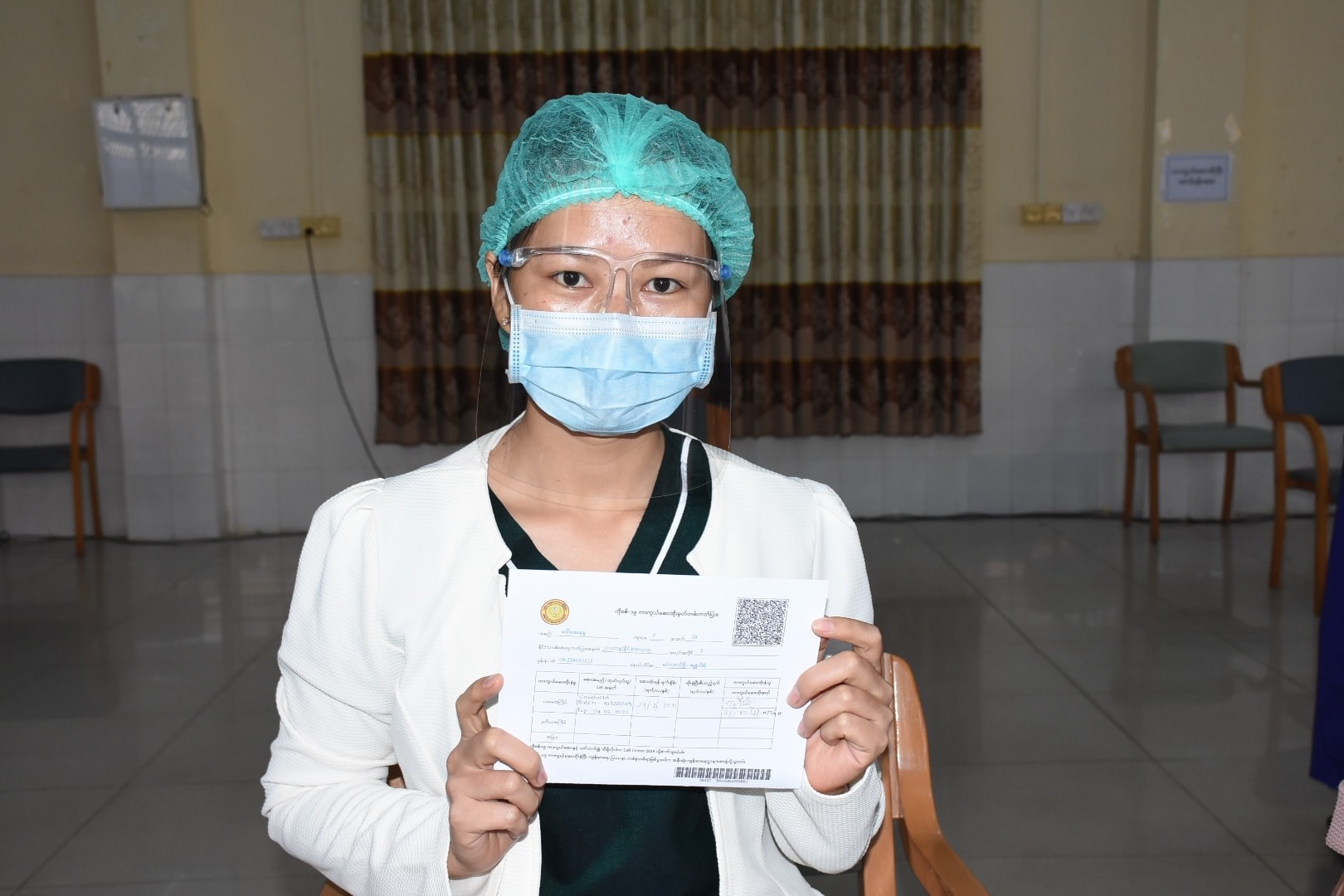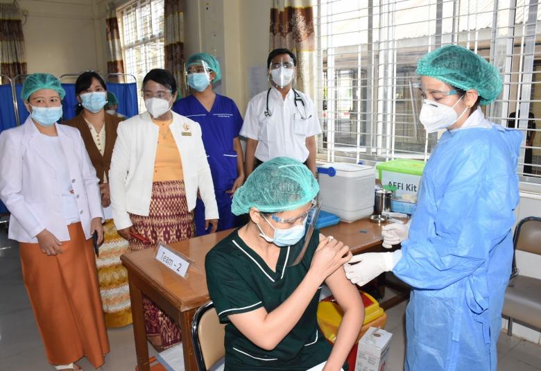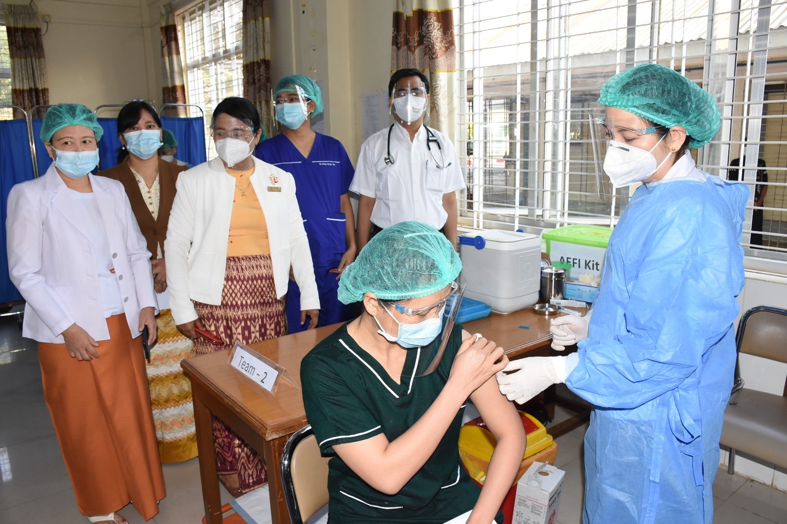 ယနေ့ နံနက် (၈) နာရီတွင် မြန်မာနိုင်ငံတွင် ပထမဆုံးအဖြစ် ကိုဗစ်-၁၉ ကာကွယ်ဆေးကို နေပြည်တော် ခုတင် (၁၀၀၀) ပြည်သူ့ဆေးရုံကြီးမှ အထက်တန်းသူနာပြု ဒေါ်အေးမူမူအား နေပြည်တော် ခုတင် (၁၀၀၀) ပြည်သူ့ဆေးရုံကြီး၌ ထိုးနှံပေးခဲ့ပါသည်။