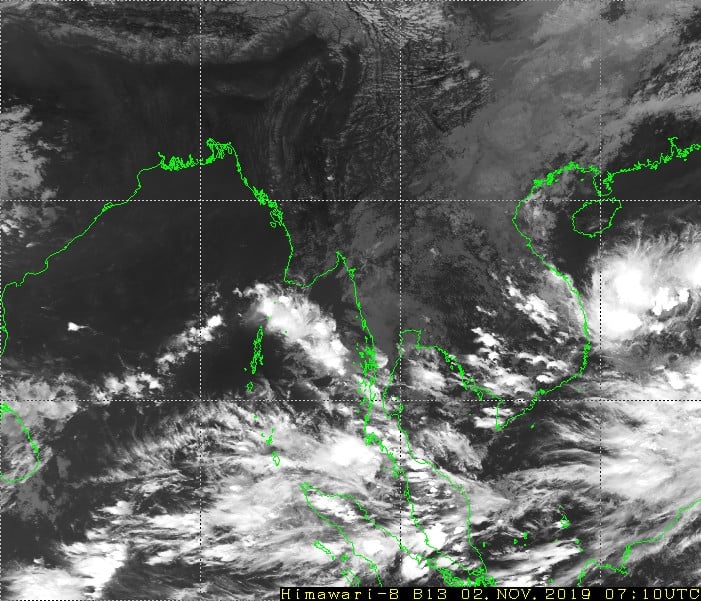 ၂၀၁၉ ခုနှစ်၊ နိုဝင်ဘာလ (၂)ရက်နေ့ မွန်းလွဲ ၂ နာရီအချိန် မိုးဇလမှ ထုတ်ပြန်ချက်အရ ဘင်္ဂလားပင်လယ်အော်မြောက်ပိုင်းနှင့် အနောက်အလယ်ပိုင်းတို့တွင် တိမ်အနည်းငယ် ဖြစ်ထွန်း နေပြီး၊ ကပ္ပလီပင်လယ်ပြင်နှင့် ကျန်ဘင်္ဂလားပင်လယ်အော်တို့တွင် တိမ်အသင့်အတင့်မှ တိမ်ထူထပ်နေပါသည်။