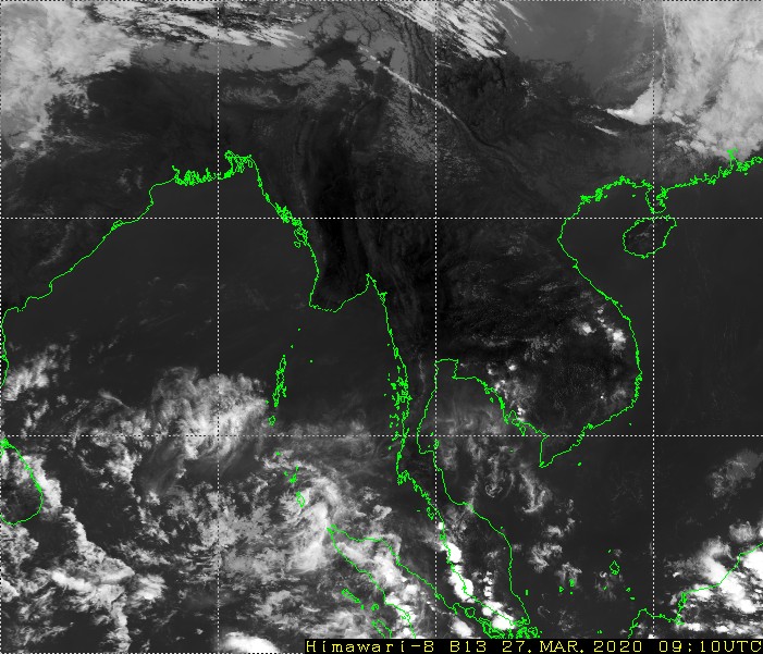 မိုးလေဝသနှင့်ဇလဗေဒညွှန်ကြားမှုဦးစီးဌာနမှ မတ်လ ၂၇ ရက်နေ့ ညနေ ၄ နာရီအချိန် ထုတ်ပြန်ချက်အရ ဘင်္ဂလားပင်လယ်အော်မြောက်ပိုင်းတွင် အများအားဖြင့် သာယာနေပြီး၊ ကပ္ပလီပင်လယ်ပြင်နှင့် ကျန်ဘင်္ဂလားပင်လယ်အော်တို့တွင် တိမ်အနည်းငယ်မှ တိမ်အသင့်အတင့် ဖြစ်ထွန်းနေသည်။