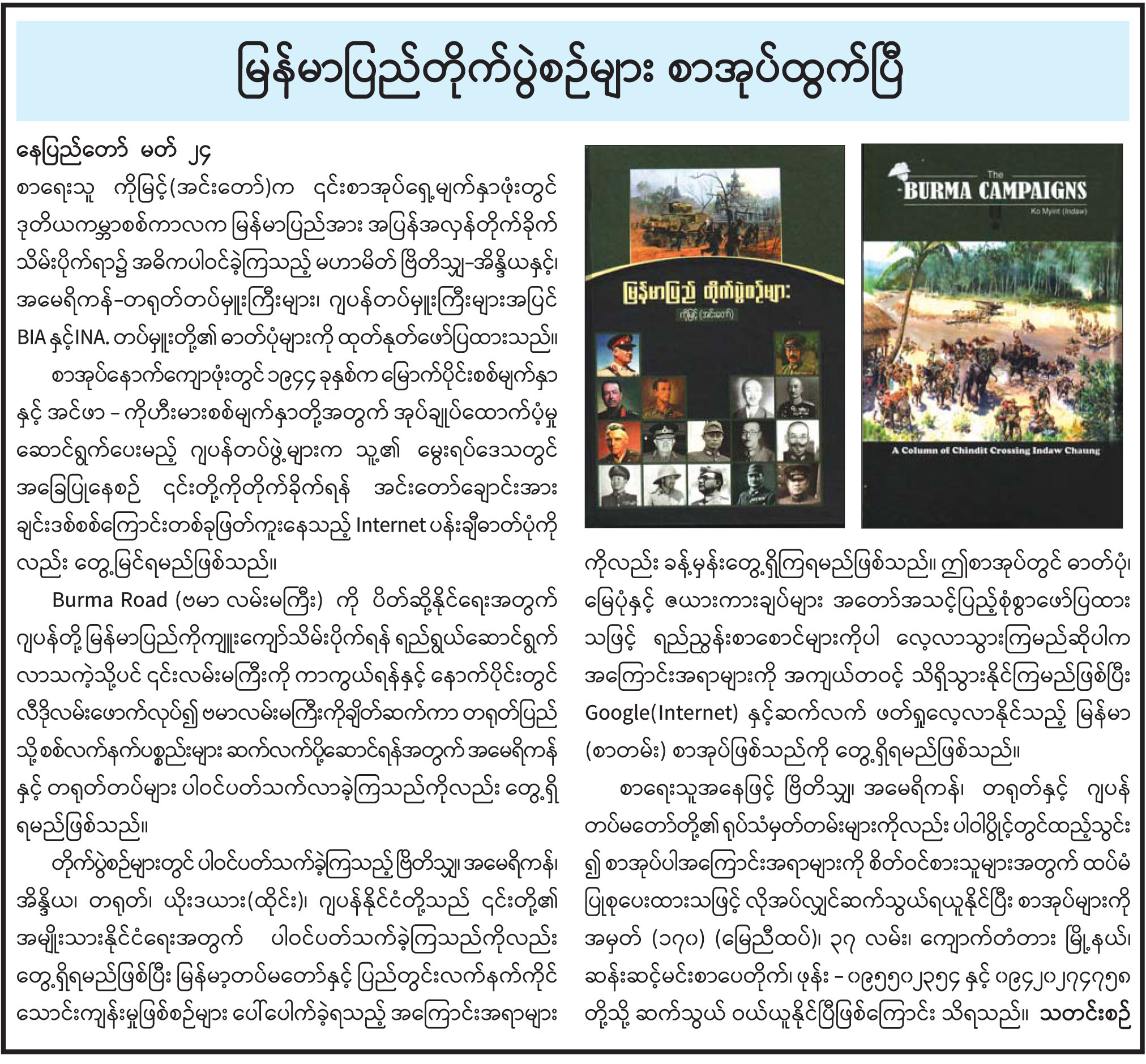 မြန်မာပြည်တိုက်ပွဲစဉ်များ စာအုပ်ထွက်ပြီ
