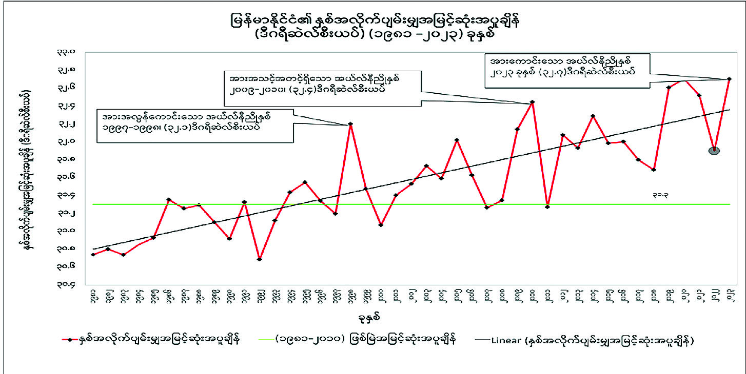 ယခုအခါ ကမ္ဘာကြီးပူနွေးလာနေမှု (Global Warming)ကြောင့် (၁၈၅၀-၁၉၀၀ ပြည့်နှစ်) ကာလ၏ ကမ္ဘာ့ပျမ်းမျှအပူချိန်နှင့် နှိုင်းယှဉ်ကြည့်ပါက လက်ရှိ ကာလ ကမ္ဘာ့ပျမ်းမျှအပူချိန်များမှာ တစ်နှစ်ထက် တစ်နှစ်ပို၍မြင့်တက်လျက်ရှိပါသည်။ အယ်လ်နီညိုဖြစ်စဉ်များသည် ကမ္ဘာကြီးပူနွေးလာနေမှုအပေါ် ဆင့်ကဲလွှမ်းမိုးကာ အယ်လ်နီညိုနှစ်များတွင် အပူချိန်များ သိသိသာသာ ပိုမိုမြင့်တက်ခဲ့ရာ ပြီးခဲ့သော ၂၀၂၃ ခုနှစ်သည် အယ်လ်နီညိုနှစ်ဖြစ်ခဲ့သည့်အတွက် ကမ္ဘာ့သမိုင်းတွင် စံချိန်တင်အပူဆုံး နှစ်တစ်နှစ်ဖြစ်ခဲ့ကြောင်း ကမ္ဘာ့မိုးလေဝသအဖွဲ့ချုပ်မှ ထုတ်ပြန်ထားပါသည်။ မြန်မာနိုင်ငံတွင်လည်း အယ်လ်နီညိုဖြစ်စဉ်စတင်ခဲ့သော ၂၀၂၃ ခုနှစ် ဧပြီလမှစတင်၍ ၂၀၂၄ ခုနှစ် မတ်လကုန်အထိ အမြင့်ဆုံးအပူချိန် စံချိန်သစ်တင်ခြင်း စုစုပေါင်း (၅၉) ကြိမ်ကိုလည်းကောင်း၊ အနိမ့်ဆုံးအပူချိန် စံချိန်သစ်တင်ခြင်း စုစုပေါင်း (၁၈) ကြိမ်ကိုလည်းကောင်း တိုင်းတာရရှိခဲ့ပါသည်။