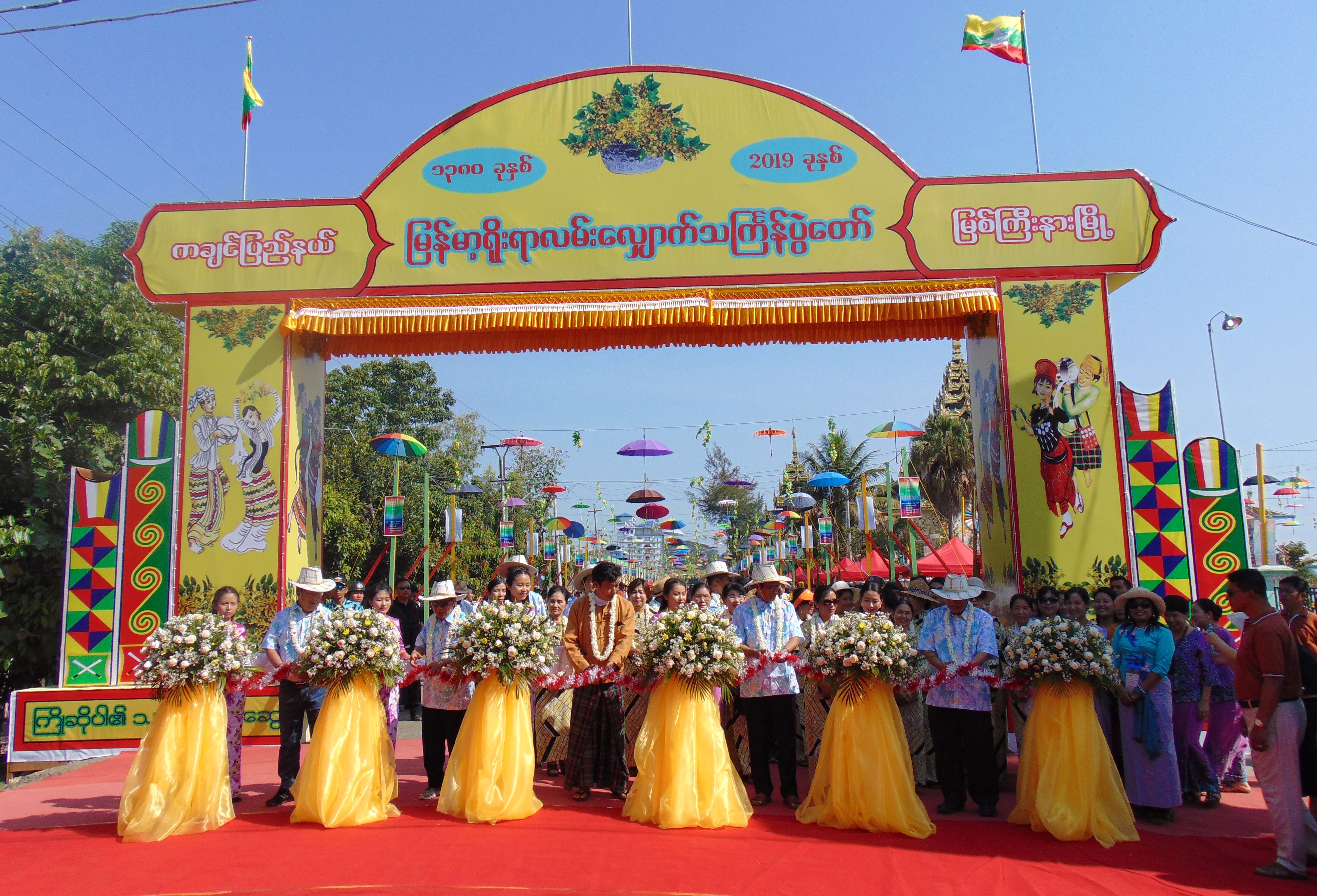 ယင်းနောက် လမ်းလျှောက်သင်္ကြန်ပွဲတော် ဖွင့်ပွဲအထိမ်းအမှတ်အဖြစ် ယိမ်းအဖွဲ့များ၏ သင်္ကြန်တေးသီချင်းဖြင့် ကပြဖျော်ဖြေမှုကို ပြည်နယ်ဝန်ကြီးချုပ် ဒေါက်တာခက်အောင်နှင့် ဇနီးဒေါက်တာ ဂျေကော့ဘူ၊ ပြည်နယ်လွှတ်တော်ဥက္ကဋ္ဌ ဦးထွန်းတင်နှင့်ဇနီး၊ ပြည်နယ်တရားလွှတ်တော် တရားသူကြီးချုပ် ဦးတူဂျာနှင့် ဇနီး၊ ပြည်နယ်လွှတ်တော် ဒုတိယဥက္ကဋ္ဌနှင့် ဇနီး၊ ပြည်နယ်အစိုးရအဖွဲ့ဝင် ဝန်ကြီးများနှင့် ဇနီးများ၊ ပြည်နယ်ဥပဒေချုပ်၊ စာရင်းစစ်ချုပ်နှင့် ပြည်နယ်အဆင့်ဌာနဆိုင်ရာများက ယိမ်းအဖွဲ့များနှင့် ပြည်သူများအား အတာရေဖြင့် လိုက်လံပက်ဖျန်းကြသည်။