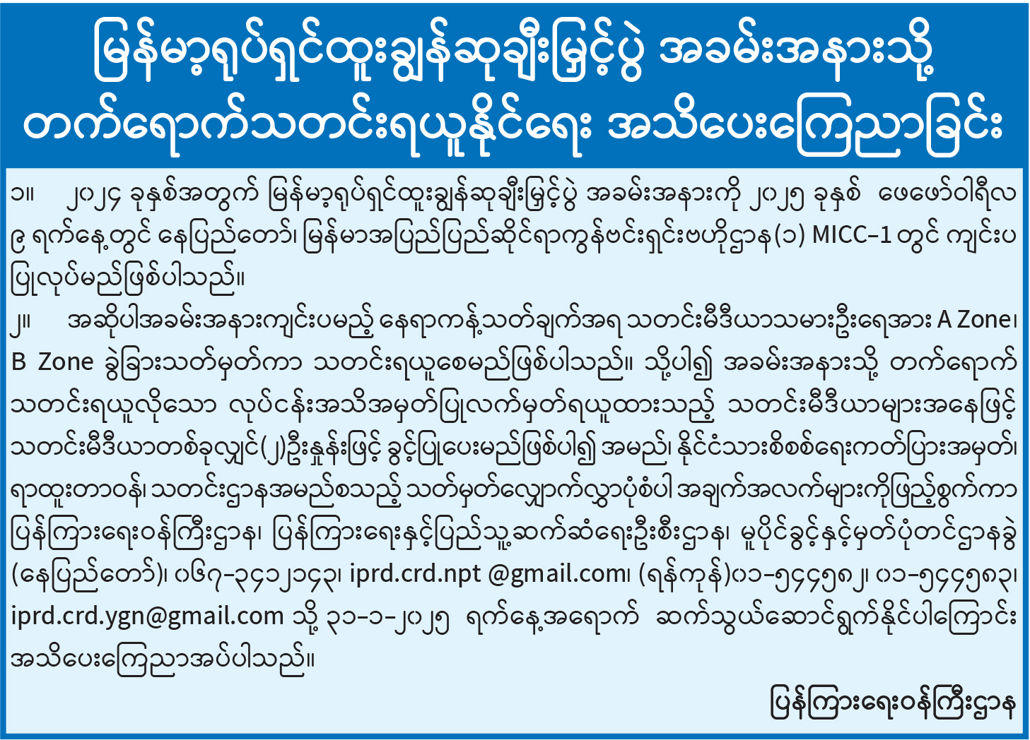 မြန်မာ့ရုပ်ရှင်ထူးချွန်ဆုချီးမြှင့်ပွဲ အခမ်းအနားသို့ တက်ရောက်သတင်းရယူနိုင်ရေး အသိပေးကြေညာခြင်း