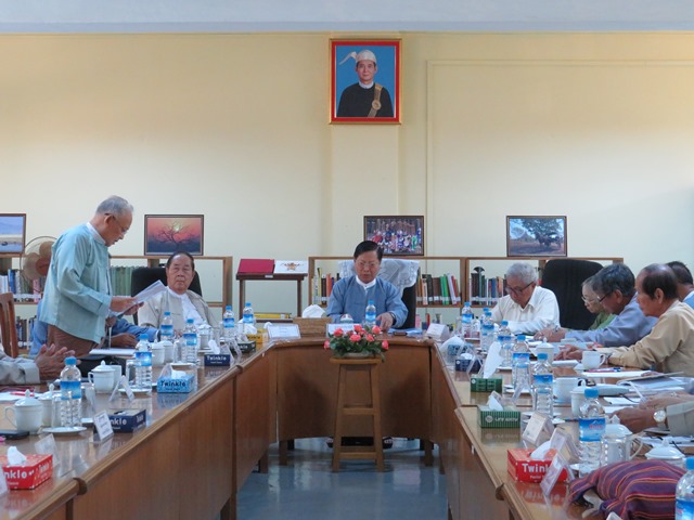 မြန်မာသမိုင်းအဖွဲ့၏ လစဉ်ပုံမှန်အစည်းအဝေးကို ယမန်နေ့ နံနက် ၉ နာရီခွဲ တွင် ရန်ကင်းမြို့နယ်၊ ကမ္ဘာအေးဘုရားလမ်းရှိ သမိုင်းသုတေသနနှင့် အမျိုးသားစာကြည့်တိုက်ဦးစီးဌာန၊ အမျိုးသားစာကြည့်တိုက် (ရန်ကုန်)၊ ပညာဆောင်၌ ကျင်းပသည်။