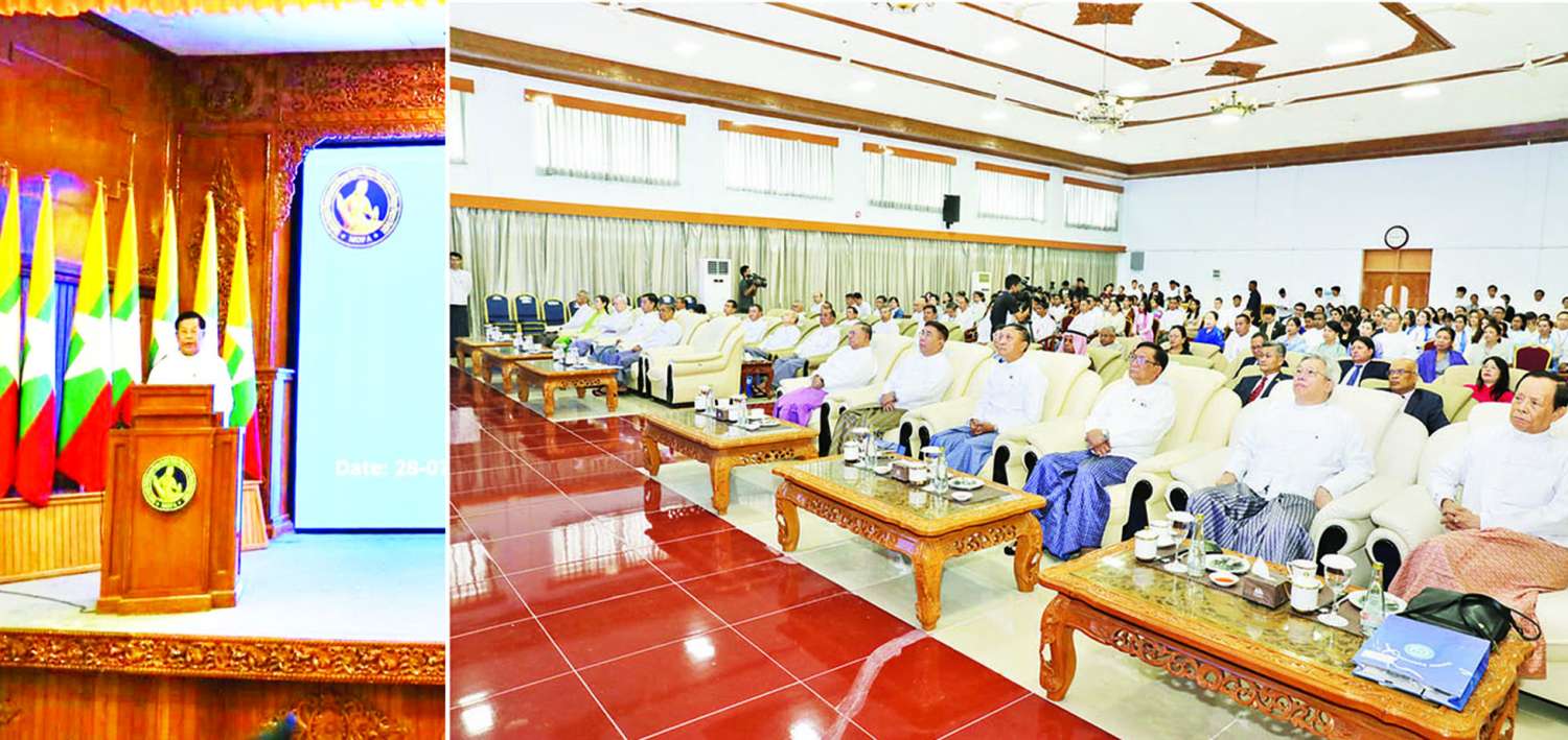 ဆက်လက်၍ ဒုတိယဝန်ကြီးချုပ်နှင့် ပြည်ထောင်စုဝန်ကြီးသည် သံတမန်ရေးရာဘွဲ့လွန်ဒီပလိုမာ သင်တန်း အမှတ်စဉ် (၁/၂၀၂၅) သင်တန်းသား သင်တန်းသူများအား “မြန်မာနိုင်ငံ၏ နိုင်ငံခြားရေး မူဝါဒ အကောင်အထည်ဖော်ခြင်း” ခေါင်းစဉ်ဖြင့် သင်ခန်းစာ ပို့ချသည်။