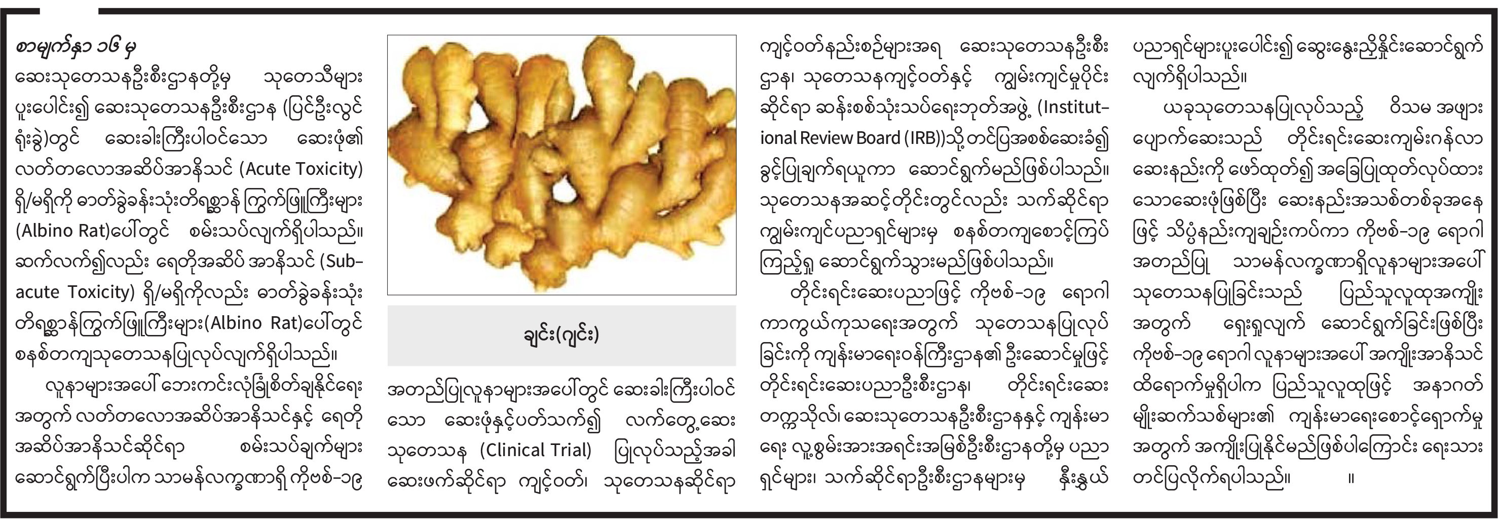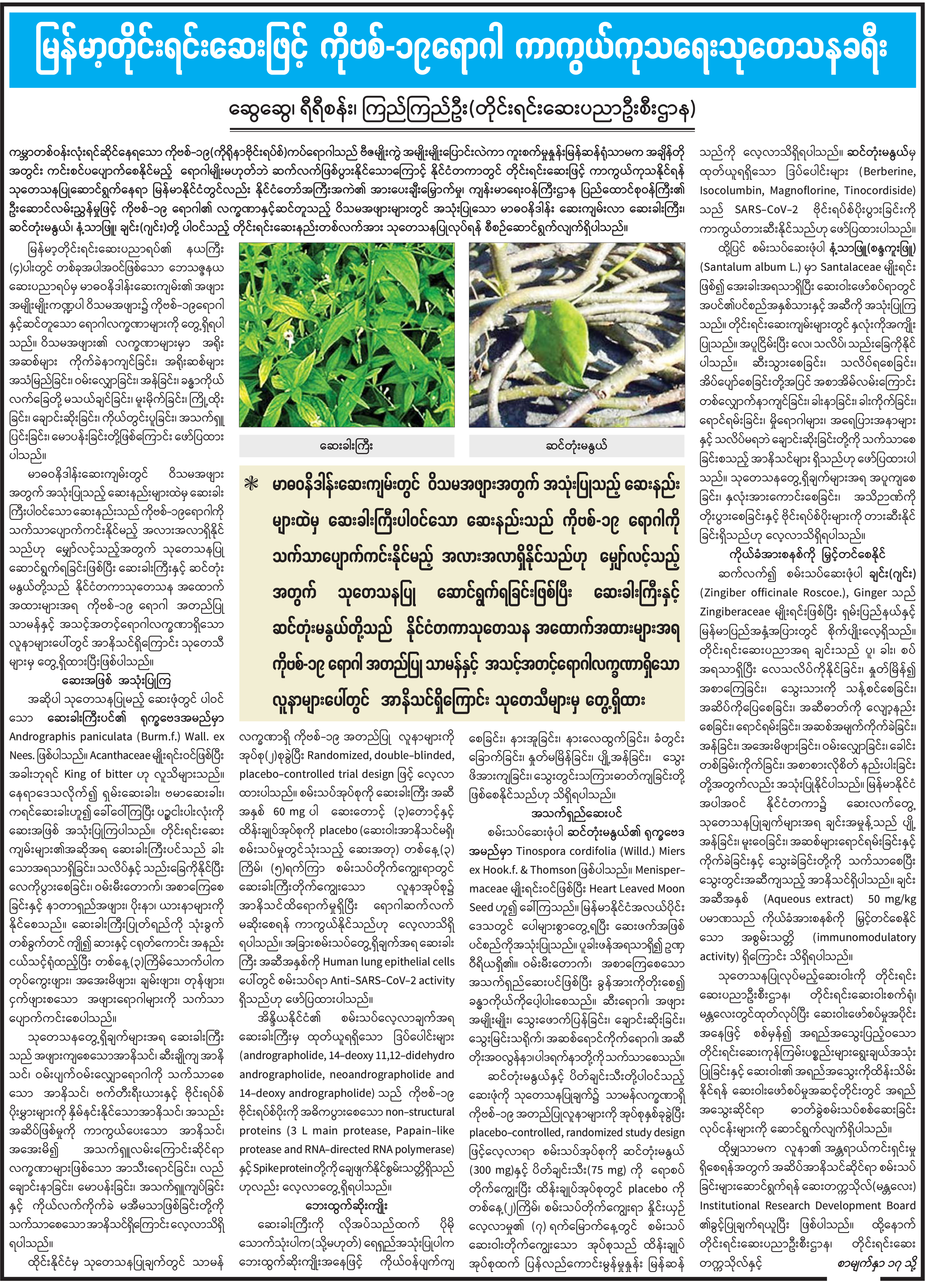 မြန်မာ့တိုင်းရင်းဆေးဖြင့် ကိုဗစ်-၁၉ ရောဂါ ကာကွယ်ကုသရေးသုတေသနခရီး