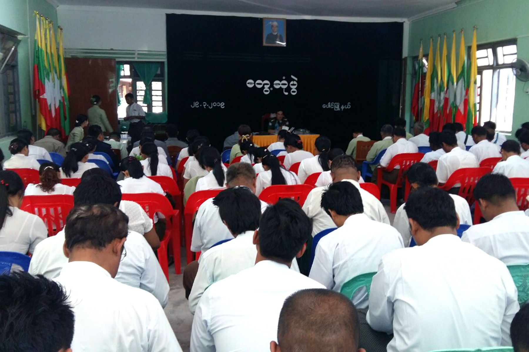 ယင်းနောက် မွန်ပြည်နယ်အစိုးရအဖွဲ့ဝင် လုံခြုံရေးနှင့် နယ်စပ်ရေးရာဝန်ကြီး ဗိုလ်မှူးကြီး နေထွဋ်ဦး က မြို့နယ်အတွင်းရှိ ဌာနဆိုင်ရာများ၊ ရပ်/ကျေးအုပ်ချုပ်ရေးမှူးများနှင့်တွေ့ဆုံကာ ရခိုင်အရေးကိစ္စနှင့်ပတ်သက်ပြီး ပင်လယ်ကမ်းခြေနှင့် ထိစပ်နေသည့် ကျေးရွာများတွင် ဘင်္ဂါလီများခိုးဝင်လာနိုင်သည့်အတွက် လုံခြုံရေးသတိထားကြစေလိုကြောင်း၊ မူးယစ်ဆေးဝါးကင်းစင်ရေးအတွက် မူးယစ်ဆေးဝါးဖမ်းဆီးအရေးယူရာတွင် ရပ်/ကျေးအုပ်ချုပ်ရေးမှူးများအနေဖြင့် တာဝန်ရှိသူများနှင့် ပူးပေါင်းဆောင်ရွက်ကြစေလိကြောင်း၊ စည်းကမ်းမဲ့ဆောင်းဘောက်ဖွင့်လှစ်နေသူများအား ဥပဒေအရ ထိရောက်စွာ အရေးယူနိုင်ရေးကိစ္စများနှင့် ယာဉ်စည်းကမ်း၊ လမ်းစည်းကမ်း လိုက်နာရေးဆိုင်ရာကိစ္စများတို့ကို ဆွေးနွေးမှာကြားခဲ့ပြီးနောက် တက်ရောက်လာကြသူများမှ သိရှိလိုသည်များအား မေးမြန်းရာ ဝန်ကြီးက ပြန်လည်ရှင်းလင်းဖြေကြားပေးခဲ့ကြောင်း သိရသည်။