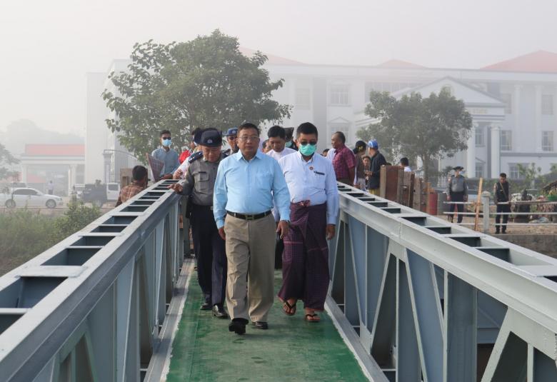 ထို့သို့ ကြည့်ရှုစစ်ဆေးစဉ် ဆိပ်ခံတံတားတည်ဆောက်ရေး တာဝန်ရှိသူတစ်ဦးက  ခေါင်းဆေးကျွန်း ဆိပ်ခံတံတား ကွန်ကရစ်တံတား၊ Balley Bridge နှင့် ဆိပ်ခံဘော တည်ဆောက်ခြင်းလုပ်ငန်းများနှင့် ပတ်သက်၍ ရှင်းလင်းတင်ပြရာ ပြည်နယ်ဝန်ကြီး ချုပ်က ဆိပ်ခံတံတား ရေရှည်အသုံးပြုနိုင်ရေးနှင့် သတ်မှတ် အရည်အသွေးပြည့်မီစေရေး အလေးထား ဆောင်ရွက်ကြရန် မှာကြားသည်။