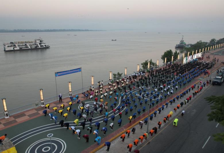 ထို့နောက် ပြည်နယ်ဝန်ကြီးချုပ်နှင့် တာဝန်ရှိသူများ၊ အများပြည်သူများသည် ကမ်းနားလမ်း ရေပေါ် အားကစားကွင်း၌ အားကစားနှင့် ကာယပညာ ဦးစီးဌာန၊ အားကစားနှင့် ကာယသိပ္ပံ လေ့ကျင့်ရေးကျောင်း (မော်လမြိုင်)တို့မှ အားကစားနည်းပြများ ဦးဆောင်ကာ ကိုယ်လက်လှုပ်ရှား လေ့ကျင့်ခန်း လုပ်ဆောင်မှုများနှင့် ကျန်းမာရေးအထောက်ကူပြု စုပေါင်း ကိုယ်လက် လှုပ်ရှားမှု (Myanmar Fitness Dance) များကို ပါဝင်ဆောင်ရွက်ကြသည်။ ဆက်လက်၍ မွန်ပြည်နယ်မှ ခရီးသွားပြည်သူများ လွယ်ကူလျင်မြန်စွာ သွားလာနိုင်ရန်အတွက် လေယာဉ်ခရီးစဉ် ပြေးဆွဲမှုအနေဖြင့် ရန်ကုန် - ကော့သောင်း - မော်လမြိုင် - ရန်ကုန် ခရီးစဉ်နှင့် ရန်ကုန် -မော်လမြိုင် - ရန်ကုန် သီးသန့် ခရီးစဉ်များကို အပတ်စဉ် တနင်္လာနေ့ နှင့် သောကြာနေ့များတွင် ပုံမှန်ပြေးဆွဲလျက်ရှိပြီး ပြည်နယ်ဝန်ကြီးချုပ်နှင့် တာဝန်ရှိသူများက ယနေ့နံနက်ပိုင်းတွင် မော်လမြိုင်လေဆိပ်သို့ ရောက်ရှိခဲ့ ကြပြီး လေဆိပ်ပရဝဏ် သန့်ရှင်းသာယာ လှပရေးနှင့် လေယဉ်ပြေးလမ်းတစ်လျှောက် အန္တရာယ် ကင်းရှင်းစေရေးအတွက် ခြုံနွယ်မြက်ပေါင်းများခုတ်ထွင် ရှင်းလင်းခြင်းနှင့် မီးတားလမ်းဖောက်လုပ် ဆောင်ရွက်နေမှုတို့ကို ကြည့်ရှုစစ်ဆေး၍ လိုအပ်သည်များ မှာကြားခဲ့ကြောင်း သိရှိရသည်။