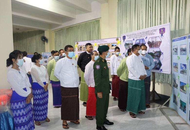 ယင်းနောက် ပြည်နယ်ဝန်ကြီးချုပ်၊ ပြည်နယ်ဝန်ကြီးများနှင့် တာဝန်ရှိသူများသည် မွန်ပြည်နယ်အတွင်း သဘာဝဘေးအန္တရာယ် လျော့ပါးရေးအတွက် ဆောင်ရွက်ထားရှိမှု မှတ်တမ်းဓါတ်ပုံများနှင့် ပြခန်းများကို လှည့်လည်ကြည့်ရှုကြသည်။
