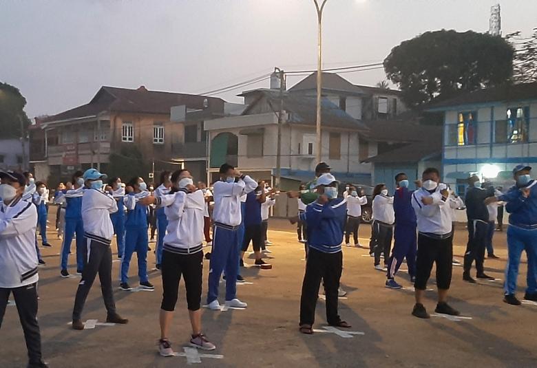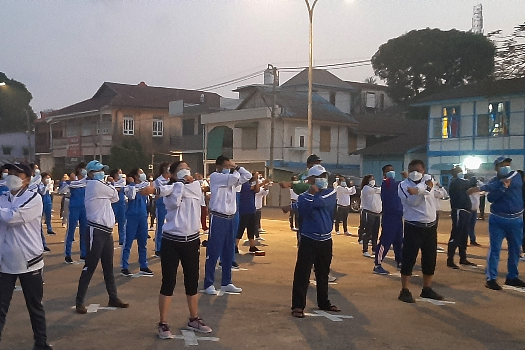 စုပေါင်းကိုယ်လက်လှုပ်ရှားမှု (Myanmar Fitness Dance) ကို အားကစားနှင့် ကာယပညာသိပ္ပံ (မော်လမြိုင်) မှ သင်တန်းနည်းပြများက ကျန်းမာရေးအထောက်အကူပြု အားကစားနည်း လေ့ကျင့်ခန်းအတွဲ (၁)၊ (၂)၊ (၃)ကို စိတ်ပါဝင်စားစွာ လိုက်ပါကစားနိုင်အောင် သရုပ်ပြပေးရာတွင် ပါဝင်ကစားသူများသည် ကျန်းမာရေးဝန်ကြီးဌာနမှ ထုတ်ပြန်ထားသည့် ကိုဗစ်-၁၉ ကာကွယ်ရေး နည်းလမ်းများနှင့်အညီ တစ်ပျော်တစ်ပါး စုပေါင်းလှုပ်ရှားကစားကြသည်။