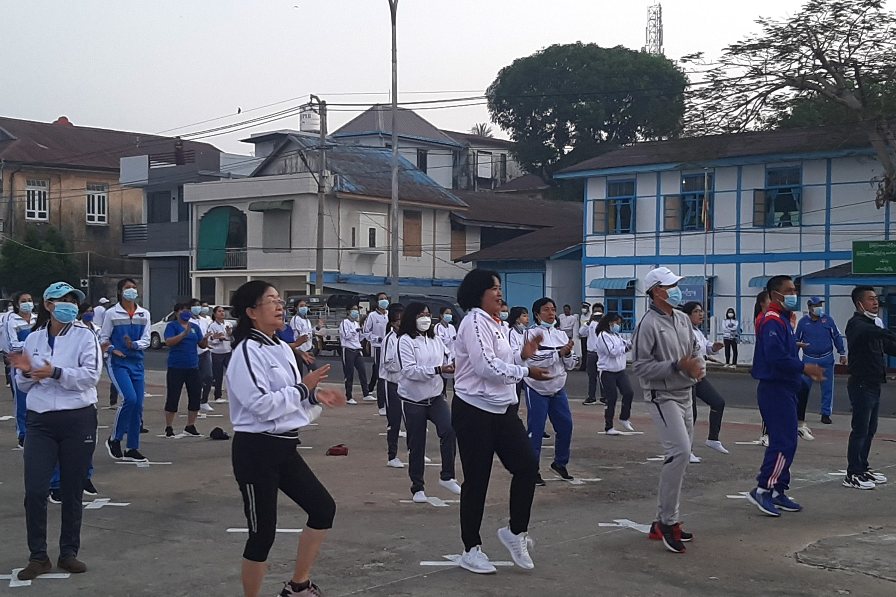 ပြည်သူများ ကိုယ်ကာယ ကျန်းမာကြံ့ခိုင်မှုရှိမှသာ လူ့စွမ်းအားအရင်းအမြစ် ဖွံ့ဖြိုးတိုးတက်မှုအတွက် များစွာအထောက်အကူပြုနိုင်စေမည့် ရည်ရွယ်ချက်ဖြင့် (Myanmar Fitness Dance) စုပေါင်းကိုယ်လက်လှုပ်ရှားမှု လေ့ကျင့်ခန်းဆောင်ရွက်ခြင်းကို ယနေ့နံနက် ၆ နာရီက မော်လမြိုင်မြို့၊ စစ်ကဲကုန်းရပ်၊ ကမ်းနားလမ်း ရေပေါ်ညဈေးနေရာတွင် ကျင်းပခဲ့ရာ မွန်ပြည်နယ်ဝန်ကြီးချုပ် ဦးဇော်လင်းထွန်း၊ ပြည်နယ်ဝန်ကြီးများ၊ ဌာနဆိုင်ရာများ၊ အားကစားနှင့် ကာယပညာသိပ္ပံ (မော်လမြိုင်) သင်တန်းနည်းပြများနှင့် သင်တန်းသူများ၊ ပညာရေးကောလိပ် သင်တန်းသူများ၊ သူနာပြုသင်တန်းသူများနှင့် ဒေသခံ အားကစားဝါသနာရှင်များ စုပေါင်းပါဝင်ဆင်နွှဲကြသည်။