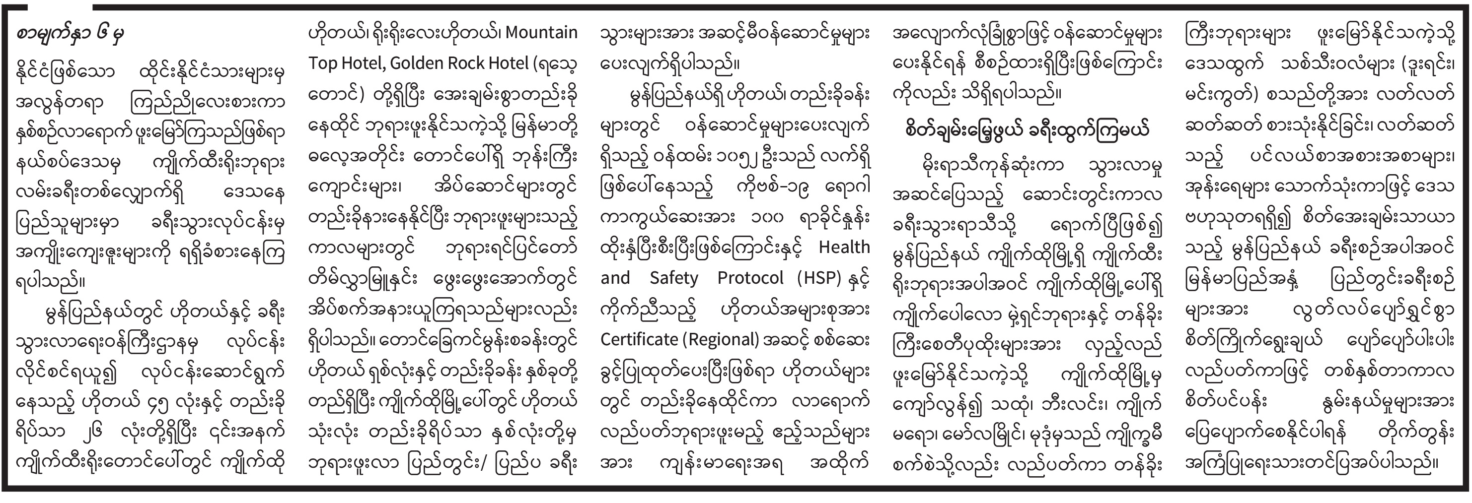 နိုင်ငံတည်ငြိမ်အေးချမ်းပြီး တရားဥပဒေစိုးမိုးမှုရှိစေရေး မိမိတို့အနေဖြင့် ဒီမိုကရေစီနည်းလမ်းဖြင့် ဆောင်ရွက်လျက်ရှိ တည်ငြိမ်အေးချမ်းပြီး တရားဥပဒေစိုးမိုးမှုရှိမှသာ ပြည်သူများ အလုပ်အကိုင်များ အဆင်ပြေချောမွေ့ပြီး နိုင်ငံဖွံ့ဖြိုးတိုးတက်လာမည်