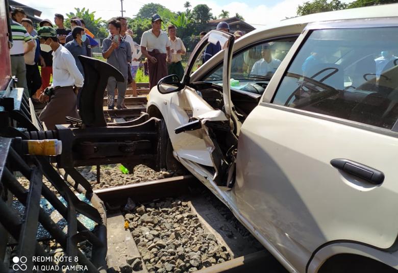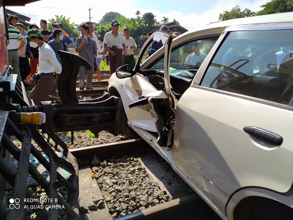 စစ်ကိုင်းတိုင်းဒေသကြီး၊ ကသာခရိုင်၊ အင်းတော်မြို့ အောင်မေတ္တာရပ်ကွက် မြအင်းသာလမ်းနှင့် မန္တလေး-မြစ်ကြီးနား မီးရထားလမ်းဆုံရာ တရားမဝင် ရထားလမ်းကူးနေရာ မီးရထားလမ်း မိုင်တိုင် အမှတ် ၅၈၅/ ၂၀ နှင့် ၅၈၅/၂၁ ကြားတွင်၂၀၂၀ ခုနှစ်၊ နိုဝင်ဘာလ ၁၈ ရက် နံနက် ၁၀ နာရီခွဲခန့်က မြစ်ကြီးနားမှ မန္တလေး သို့ ထွက်ခွာလာသော စက်ခေါင်းအမှတ် DF – 1343 ( အစုန် ) ကုန်တင်ရထားနှင့် မြအင်းသာ လမ်းအတိုင်း မောင်းနှင်လာသော AD Van အမျိုးအစား (အဖြူရောင်) ယာဉ်နှင့် တိုက်မိ၍ ကားမှာ မီးရထားလမ်းအတိုင်း ပေ ၁၅၀ ခန့် လျှောတိုက်ပါသွားကြောင်း သိရသည်။