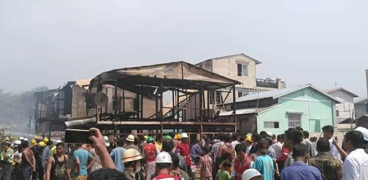 မီးလောင်မှုကြောင့် အနီးဝန်းကျင်ရှိ ၁၀ X ၂၀ ပေ ထရံကာ ၂ ထပ်နေအိမ် ၂ လုံး၊ ၁၀ x ၁၈ ပေ ထရံကာ ၂ ထပ်အိမ် ၂ လုံး၊ ၁၀ x ၂၀ ပေ သွပ်မိုးထရံကာ နေအိမ်၃လုံး၊ ၁၀ x ၂၀ ပေပျဉ်ထောင် ၂ ထပ်အိမ် ၂ လုံး၊ ၂၀ x ၂၅ ပေ ပျဉ်ထောင် ၂ ထပ်အိမ် ၂ လုံး၊ ၁၂ x ၃၀ ပေ၊ ၁၅ x ၃၀ ပေ၊ ၂၀ x ၃၀ နံကပ် ၂ ထပ်အိမ် အပေါ်ထပ် ၃ လုံး စုစုပေါင်း နေအိမ် ၁၄လုံး ကူးစက်လောင်ကျွမ်းခဲ့ပြီး မော်တော်ယာဉ်ရှေ့ လေကာမှန် မီးလောင်သွားခဲ့ကြောင်း သိရသည်။