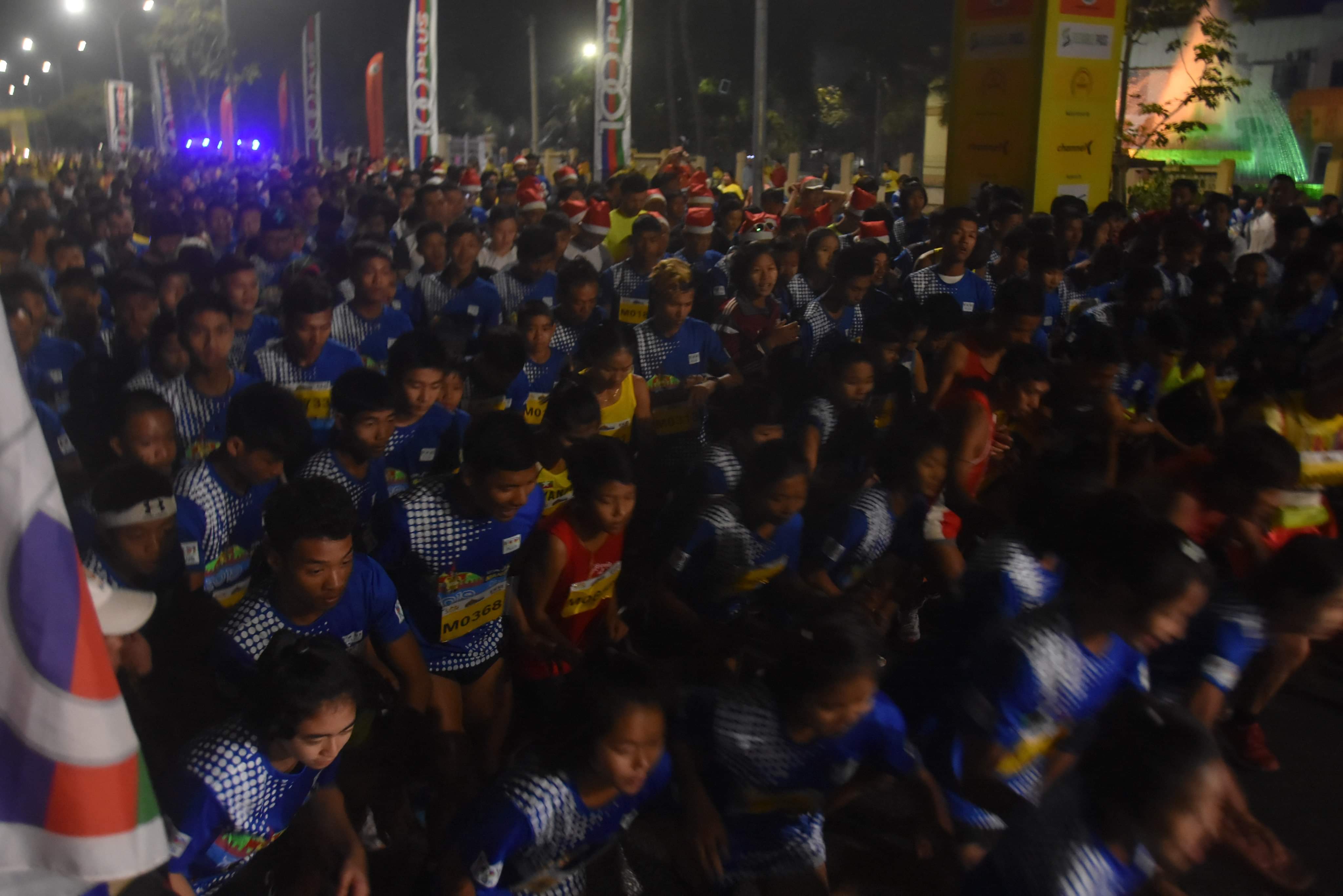 ထို့နောက် အစိုးရအဖွဲ့ဝင်ဝန်ကြီးများနှင့်အတူ တာထွက်အလံမြောက်၍ တာလွှတ်ခဲ့ရာ အပြေးအားကစား မောင်မယ် ၁၅၀ဝ ကျော်တို့က စုရပ်မှ ၂၆ လမ်းအတိုင်း ကျုံးအနောက်ဘက်၊ ကျုံးမြောက်ဘက်လမ်းမှ ဂေါက်ကွင်းလမ်းအတိုင်း မန္တလေးတောင်ကိုပတ်ကာ ၆၂ လမ်းမှ သတ်မှတ်လမ်းကြောင်းအတိုင်း ၂၆ လမ်းရှိ တာလွှတ်စုရပ်သို့ ယှဉ်ပြိုင်ကြပြီး ပန်းဝင်ခဲ့ကြသည်။