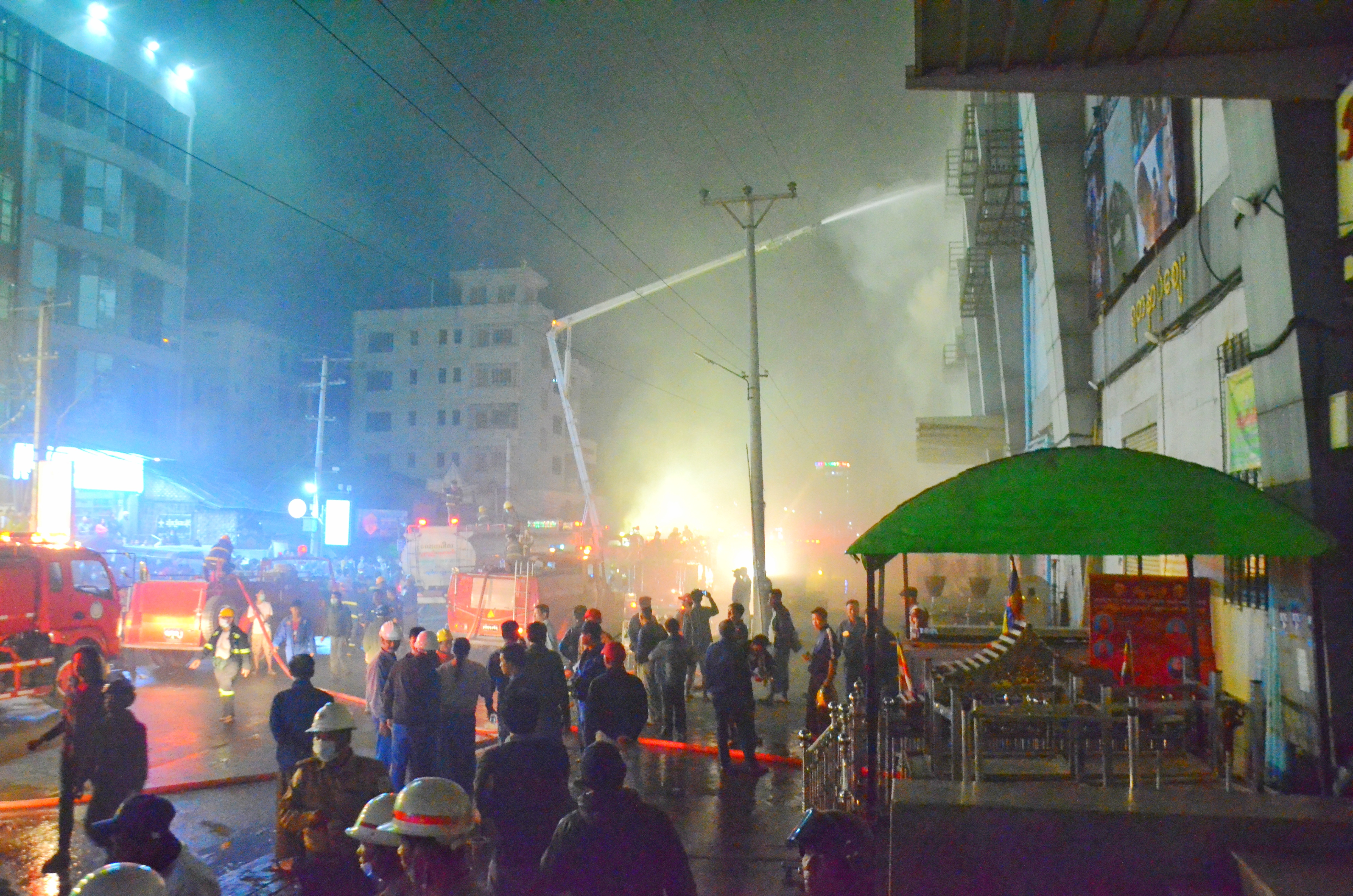 အဆိုပါ မီးလောင်မှု ဖြစ်ပွားရာသို့ ရောက်ရှိနေသည့် မန္တလေးတိုင်းဒေသကြီး အစိုးရအဖွဲ့ ခေတ္တဝန်ကြီးချုပ် ဦးဇာနည်အောင်က "တစ်တိုင်းလုံးမှာ ရှိတဲ့ မီးသတ်သမားတွေက စွန့်စွန့်စားစား အောက်စီဂျင်စက်တွေ အကူအညီနဲ့ အထဲဝင်ရောက်ပြီး ငြှိမ်းသတ်နေပါတယ်။ လက်ရှိ အခြေအနေမှာတော့ မီးကို ထိန်းထားနိုင်ပါပြီ။ အထပ်မြင့်ဖြစ်တဲ့အတွက် မီးငြှိမ်းသတ်ရတာ ခက်ခဲပါတယ်။ လိုအပ်ရင် စစ်ကိုင်းတိုင်းကလည်း ကူညီဖို့အတွက် အဆင်သင့် ပြင်ဆင်ထားပါတယ်" ဟု ပြောကြားသည်။