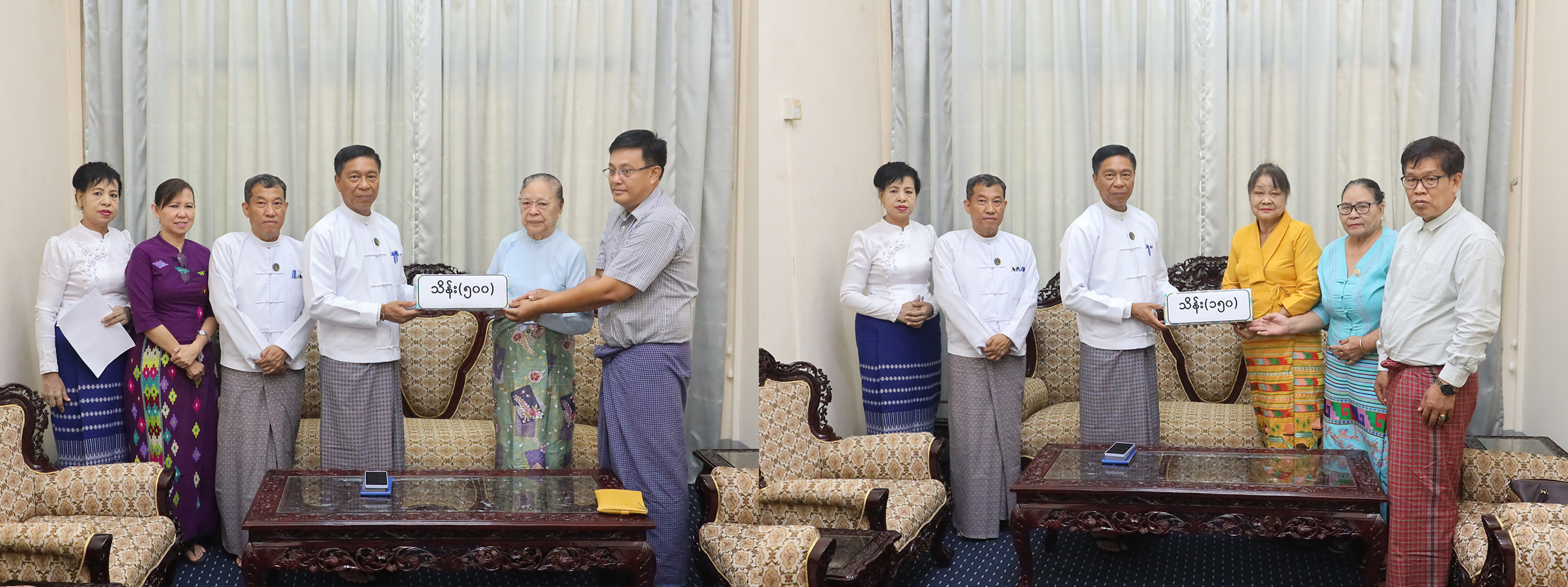 မန္တလေးငလျင်ကြီး ဘေးဒဏ်သင့်ပြည်သူများအတွက် လိုအပ်သည့် ထောက်ပံ့မှုများနှင့် ပြန်လည်ထူထောင် ရေးလုပ်ငန်းများ ဆောင်ရွက်နိုင်ရန်အတွက် ယနေ့တွင် ဦးမြတ်ဦး+ဒေါ်ခင်ဦး မိသားစုက ငွေကျပ်သိန်း (၅၀၀)နှင့် မန္တလေးအခြေစိုက် ရှမ်းနီလူမှုရေးအသင်းက ငွေကျပ်သိန်း(၁၅၀)ကို လူမှုဝန်ထမ်း၊ ကယ်ဆယ် ရေးနှင့် ပြန်လည်နေရာချ ထားရေးဝန်ကြီးဌာနရှိ သဘာဝဘေးအန္တရာယ် ဆိုင်ရာစီမံခန့်ခွဲမှုဗဟိုဌာန (DMC) ရုံးသို့ လာရောက်ပေးအပ်လှူဒါန်းကြရာ ပြည်ထောင်စုဝန်ကြီး ဒေါက်တာစိုးဝင်းက လက်ခံရယူပြီး ကျေးဇူးတင်စကားပြောကြားကာ ဂုဏ်ပြုမှတ်တမ်းလွှာများ ပြန်လည်ပေးအပ်ခဲ့ကြောင်း သတင်းရရှိသည်။