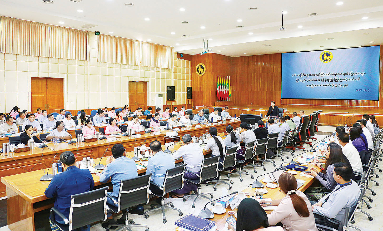 ဆက်လက်၍ (၅၃)ကြိမ်မြောက် ASEAN Banking Council အစည်းအဝေးနှင့် (၂၄)ကြိမ် မြောက် ASEAN Banking Confe-rence တို့ကို နိုဝင်ဘာလတွင် ရန်ကုန်မြို့၌ ကျင်းပမည့်ကိစ္စနှင့် ပတ်သက်၍ နိုင်ငံတော်ဗဟိုဘဏ် အစည်းအဝေးခန်းမ၌ ဆွေးနွေး ကြသည်။