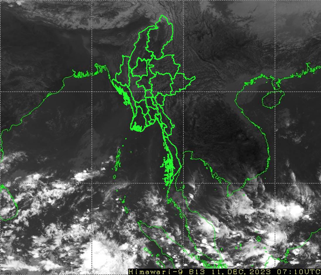 လွန်ခဲ့သော(၂၄)နာရီအတွင်းက နေပြည်တော်၊ ရန်ကုန်တိုင်းဒေသကြီး၊ ကချင်ပြည်နယ်၊ ကရင်ပြည်နယ်နှင့် မွန်ပြည်နယ်တို့တွင် နေရာကွက်ကျား မိုးထစ်ချုန်းရွာခဲ့ပြီး၊ ကျန်တိုင်းဒေသကြီးနှင့် ပြည်နယ်တို့တွင် တိမ်အသင့်အတင့် ဖြစ်ထွန်း ခဲ့ပါသည်။ ညအပူချိန်များမှာ ရန်ကုန်တိုင်းဒေသကြီးနှင့် ရခိုင်ပြည်နယ်တို့တွင် ဒီဇင်ဘာလ၏ ပျမ်းမျှအပူချိန်တို့ထက် (၂)ဒီဂရီစင်တီဂရိတ်၊ စစ်ကိုင်းတိုင်း ဒေသကြီး၊ မန္တလေးတိုင်းဒေသကြီး၊ မကွေးတိုင်းဒေသကြီး၊ ပဲခူးတိုင်းဒေသကြီး၊ ဧရာဝတီတိုင်းဒေသကြီး၊ ကချင်ပြည်နယ်၊ ရှမ်းပြည်နယ်(မြောက်ပိုင်း)၊ ချင်း ပြည်နယ်၊ ကယားပြည်နယ်၊ ကရင်ပြည်နယ်နှင့် မွန်ပြည်နယ်တို့တွင် ဒီဇင်ဘာလ၏ ပျမ်းမျှအပူချိန်တို့ထက် (၃)ဒီဂရီစင်တီဂရိတ်မှ (၄)ဒီဂရီစင်တီဂရိတ် အထိနှင့် နေပြည်တော်နှင့် ရှမ်းပြည်နယ်(တောင်ပိုင်း)တို့တွင် ဒီဇင်ဘာလ၏ ပျမ်းမျှအပူချိန်တို့ထက် (၅)ဒီဂရီစင်တီဂရိတ်မှ (၆)ဒီဂရီစင်တီဂရိတ်အထိ ပိုခဲ့ပြီး၊ ကျန်တိုင်းဒေသကြီးနှင့် ပြည်နယ်တို့တွင် ဒီဇင်ဘာလ၏ ပျမ်းမျှအပူချိန်ခန့်သာ ရှိခဲ့ပါသည်။ ထူးခြားသည့် ညအပူချိန်များမှာ တီးတိန်မြို့တွင် (၆)ဒီဂရီစင်တီ ဂရိတ်၊ မတူပီမြို့နှင့် ပြင်ဦးလွင်မြို့တို့တွင် (၈)ဒီဂရီစင်တီဂရိတ်စီနှင့် တွန်းဇံမြို့တွင် (၉)ဒီဂရီစင်တီဂရိတ်တို့ ဖြစ်ကြပါသည်။ မှတ်သားဖွယ်ရာ မိုးရေချိန်များမှာ သိမ်ဇရပ်မြို့တွင် (၀.၈၃)လက်မ၊ သထုံမြို့တွင် (၀.၇၅)လက်မနှင့် ကိုးကိုးကျွန်းမြို့တွင် (၀.၀၈)လက်မတို့ ဖြစ်ကြပါသည်။