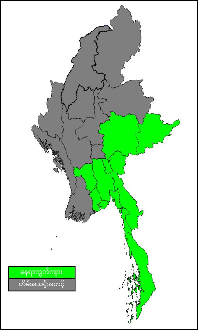 မနက်ဖြန်နံနက်အထိခန့်မှန်းချက်။ ပဲခူးတိုင်းဒေသကြီး၊ ရန်ကုန်တိုင်းဒေသကြီး၊ တနင်္သာရီတိုင်း ဒေသကြီး၊ ရှမ်းပြည်နယ်(တောင်ပိုင်းနှင့် အရှေ့ပိုင်း)၊ ကယားပြည်နယ်၊ ကရင်ပြည်နယ်နှင့် မွန်ပြည်နယ်တို့တွင် နေရာကွက်ကျား မိုးထစ်ချုန်းရွာနိုင်ပါသည်။ ရွာရန်ရာနှုန်း(၆၀) ဖြစ်ပါသည်။ ကျန်တိုင်းဒေသကြီးနှင့် ပြည်နယ်တို့တွင် တိမ်အသင့်အတင့် ဖြစ်ထွန်းမည်။