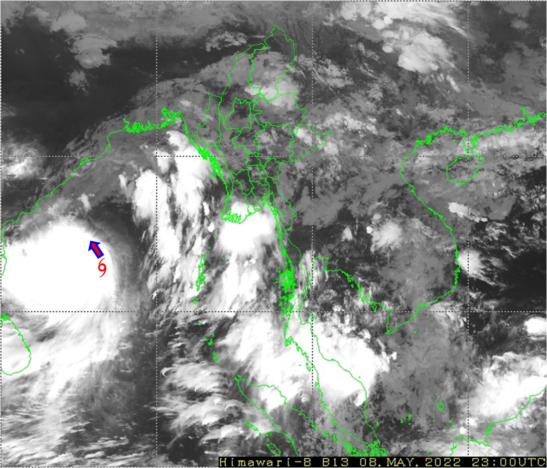 မိုးလေဝသနှင့် ဇလဗေဒညွှန်ကြားမှု ဦးစီးဌာနက ယနေ့နံနက် ထုတ်ပြန်သည့် မိုးလေဝသ သတင်းအရ ဘင်္ဂလားပင်လယ်အော် အရှေ့တောင်ပိုင်းနှင့် ယင်းနှင့်ဆက်စပ်လျက်ရှိသော ဘင်္ဂလားပင်လယ်အော် အရှေ့အလယ်ပိုင်းတို့တွင် ဖြစ်ပေါ်နေသော အားကောင်းသော ဆိုင်ကလုန်းမုန်တိုင်း (Severe Cyclonic Storm) “အာစန်နီ(Asani)” သည် အနောက်မြောက်ဘက်သို့ ရွေ့လျားခဲ့ပြီး၊ ဘင်္ဂလားပင်လယ်အော် အနောက်အလယ်ပိုင်းနှင့် ယင်းနှင့်ဆက်စပ်လျက်ရှိသော ဘင်္ဂလားပင်လယ်အော် အရှေ့တောင်ပိုင်းသို့ ရောက်ရှိခဲ့ကာ၊ အိန္ဒိယနိုင်ငံ၊ ပို့ပလဲယား (Port Blair) ၏ အနောက်-အနောက်မြောက်ဘက် ရေမိုင် (၃၄၀) မိုင်ခန့်၊ ဗီဆာကာပတ္တနမ်မြို့ (Vishakhapatnam) ၏ အရှေ့တောင်ဘက် ရေမိုင် (၃၄၅) မိုင်ခန့်၊ ပူရီမြို့ (Puri) ၏ တောင်-အရှေ့တောင်ဘက် ရေမိုင် (၃၉၅) မိုင်ခန့်၊ မြန်မာနိုင်ငံ၊ ကိုကိုးကျွန်းမြို့(Coco Island)၏ အနောက်-အနောက်တောင်ဘက် ရေမိုင် (၃၆၀) မိုင်ခန့်နှင့် ဟိုင်းကြီးကျွန်းမြို့ (Hainggyikyun) ၏ အနောက်-အနောက်တောင်ဘက် ရေမိုင် (၄၄၅) မိုင်ခန့်အကွာ ပင်လယ်ပြင်ကို ဗဟိုပြုနေသည်။ ကပ္ပလီပင်လယ်ပြင်နှင့် ဘင်္ဂလားပင်လယ်အော်တို့တွင် တိမ်ထူထပ်နေသည်။