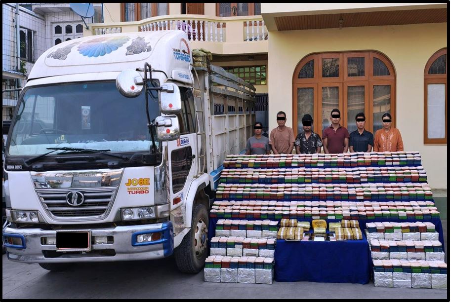 မူးယစ်ဆေးဝါးတားဆီးနှိမ်နင်းရေးရဲတပ်ဖွဲ့မှ တပ်ဖွဲ့ဝင်များပါဝင်သော ပူးပေါင်းအဖွဲ့သည် မတ် ၉ ရက် နံနက် ၅ နာရီခွဲတွင် မန္တလေးတိုင်းဒေသကြီး၊ ပြည်ကြီးတံခွန်မြို့နယ်တွင် ဟန်ဝင်းအောင် မောင်းနှင်ပြီး နိုင်မင်းထက်နှင့် စိုးမိုးအောင် တို့လိုက်ပါလာသည့် NISSAN CONDOR ၆ ဘီးမော်တော်ယာဉ်ကို သတင်းအရရှာဖွေရာ ကာလတန်ဖိုးငွေကျပ် ၁ ဘီလီယံကျော်တန်ဖိုးရှိ ပလတ်စတစ်ဆပ်ပြာခွက် ၃,၀၈၀ ဖြင့်ထည့်လျက် ဘိန်းဖြူ ၃၀ ဒသမ ၈ ကီလိုနှင့် စိတ်ကြွရူးသွပ်ဆေးပြား ၁ ဒသမ ၅၄ သိန်း သိမ်းဆည်းရမိခဲ့ပြီး စစ်ဆေးဖော်ထုတ်ချက်အရ မူးယစ်ဆေးဝါးများကို ရှမ်းပြည်နယ် (မြောက်ပိုင်း) မှ မန္တလေးတိုင်းဒေသကြီးသို့ သိမ်းဆည်းရမိ သယ်ဆောင်ရောင်းဝယ်သူများဖြစ်ကြသည့် တင်ဝင်းကို ပြည်ကြီးတံခွန်မြို့နယ်၊ (ည) ရပ်ကွက်၊ ၁၃၉ (B) လမ်း၊ ၆၂ x ၆၃ လမ်းကြားတွင်လည်းကောင်း၊ မသီရိဒုံနှင့် မဝါဝါစိုးတို့ကို မကွေးတိုင်းဒေသကြီး၊ မင်းဘူးမြို့နယ်တွင်လည်းကောင်း အသီးသီးဖမ်းဆီးရမိခဲ့သဖြင့် ၎င်းတို့အား မူးယစ်ဆေးဝါးနှင့် စိတ်ကိုပြောင်းလဲစေသော ဆေးဝါးများဆိုင်ရာဥပဒေအရ အရေးယူထားရှိပြီး ကွင်းဆက်ပြစ်မှုကျူးလွန်သူများအား စစ်ဆေးဖော်ထုတ်လျက်ရှိကြောင်း သိရသည်။