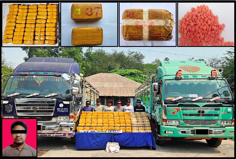 ဖြစ်စဉ်မှာ မူးယစ်ဆေးဝါးတားဆီးနှိမ်နင်းရေးရဲတပ်ဖွဲ့ဝင်များ ပါဝင်သော ပူးပေါင်းအဖွဲ့သည် မတ် ၁၄ ရက် ညနေ ၄ နာရီခွဲတွင် မန္တလေးတိုင်းဒေသကြီး၊ ပြည်ကြီးတံခွန်မြို့နယ်၊ ၁၃၄ လမ်းနှင့် ၇၈ လမ်းထောင့်၌ အောင်နိုင်ထွေး (ခ) ဖိုးသား မောင်းနှင်ပြီး ရဲလင်းဖြိုး လိုက်ပါလာသည့် NISSAN ၁၂ ဘီးမော်တော်ယာဉ်နှင့် နန်းလင်း မောင်းနှင်ပြီး ရဲဝင်းထက် လိုက်ပါလာသည့် NISSAN ၁၂ ဘီး မော်တော်ယာဉ်တို့ကို သတင်းအရရှာဖွေရာ အဆိုပါယာဉ် ၂ စီးပေါ်တွင် ကုန်ပစ္စည်းများဖြင့် ဖုံးအုပ် သယ်ဆောင်လာသည့် စိတ်ကြွရူးသွပ်ဆေးပြား ၁၀ ဒသမ ၁ သိန်း သိမ်းဆည်းရမိခဲ့သည်။