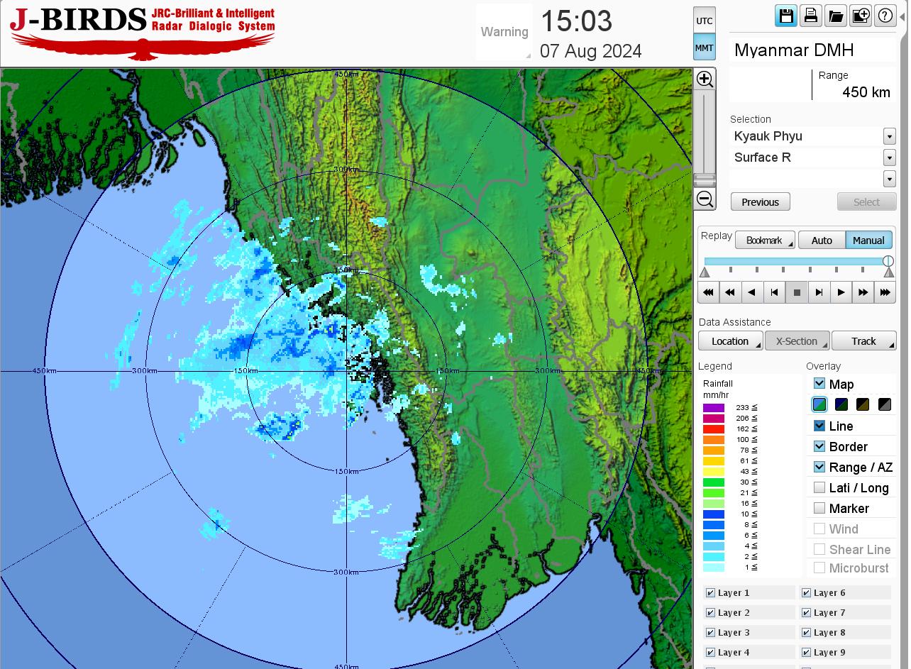 မိုးတိမ်တောင်ဖြစ်ပေါ်မှုအခြေအနေ။ စစ်ကိုင်းတိုင်းဒေသကြီး၊ မန္တလေးတိုင်းဒေသကြီး၊ မကွေးတိုင်းဒေသကြီး၊ ပဲခူးတိုင်းဒေသကြီး၊ ရန်ကုန်တိုင်းဒေသကြီး၊ ဧရာဝတီတိုင်းဒေသကြီး၊ တနင်္သာရီတိုင်းဒေသကြီး၊ ကချင်ပြည်နယ်၊ ရှမ်းပြည်နယ်၊ ချင်းပြည်နယ်၊ ရခိုင်ပြည်နယ်၊ ကရင်ပြည်နယ်နှင့် မွန်ပြည်နယ်တို့တွင် မိုးတိမ်တောင်များ ဖြစ်ထွန်းလျက်ရှိပါသည်။