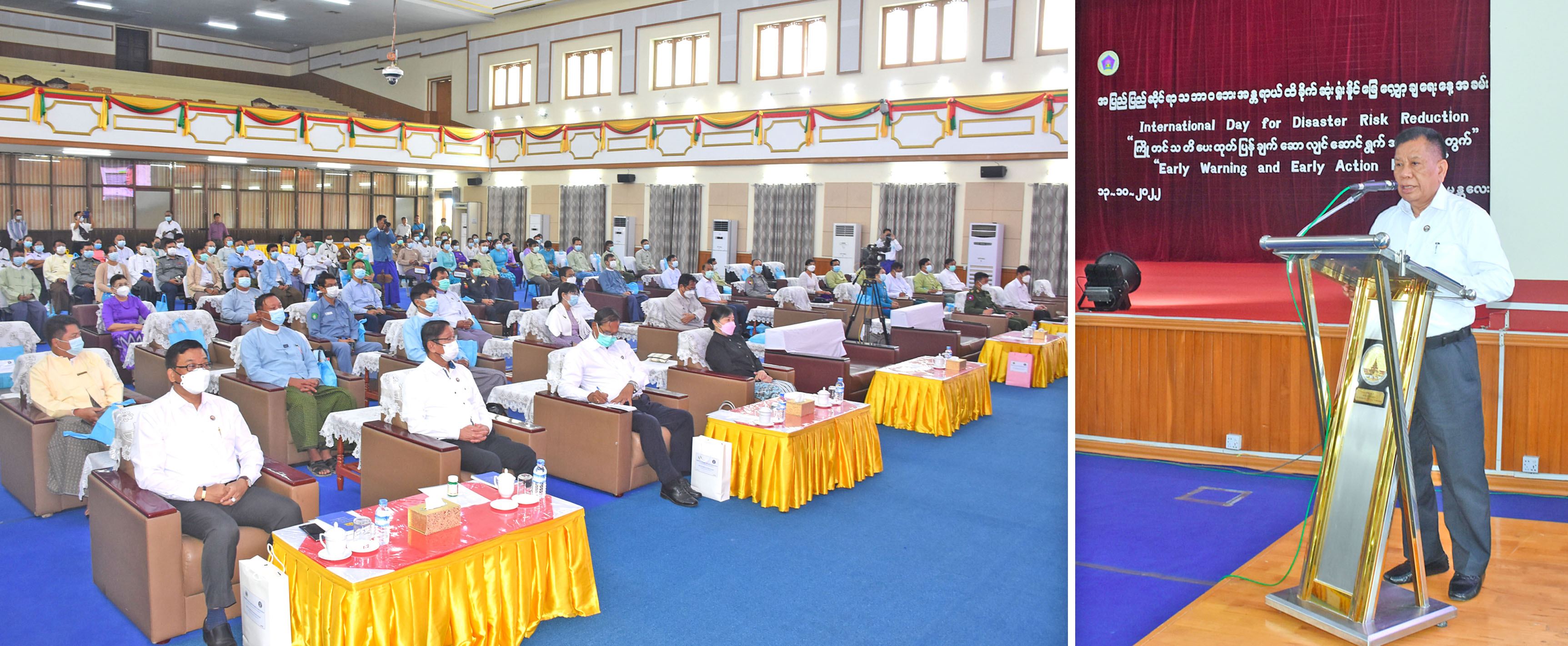 ၂၀၂၂ ခုနှစ် အပြည်ပြည်ဆိုင်ရာ သဘာဝဘေးအန္တရာယ် ထိခိုက်ဆုံးရှုံးနိုင်ခြေ လျှော့ချ ရေးနေ့အထိမ်းအမှတ် အခမ်းအနားကို ချမ်းအေးသာစံမြို့နယ်ရှိ မန္တလေး မြို့တော်စည်ပင်သာ ယာရေးကော်မတီရုံး မြို့တော်ခန်းမတွင် ယနေ့ နံနက်ပိုင်းက ကျင်းပရာတွင် ဝန်ကြီးချုပ် ဦးမောင်ကို ထိုသို့ပြောကြားခြင်းဖြစ်သည်။
