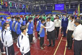 ဆက်လက်၍ အားကစားသမားများက အားကစားသစ္စာအဓိဋ္ဌာန်များ ရွတ်ဆိုပြီးနောက် တိုင်းဒေသကြီးဝန်ကြီးချုပ်မှ ပြိုင်ပွဲဝင်အားကစားများ၊ အုပ်ချုပ်သူများ၊ နည်းပြများ၊ အကဲဖြတ် အမှတ်ပေးဒိုင်အဖွဲ့များကို လိုက်လံနှုတ်ဆက်ကာ တစ်ဦးလျှင် ထောက်ပံ့ငွေကျပ်(၁၅၀၀၀)နှုန်းဖြင့် စုစုပေါင်း ထောက်ပံ့ငွေကျပ်(၄၁၁၀၀၀၀) အားပေးအပ်ပြီး မြန်မာနိုင်ငံဝူရှူးအဖွဲ့ချုပ် မျိုးဆက်သစ်လူငယ်များ၏ သရုပ်ပြသမှုနှင့် ပြိုင်ပွဲဝင်များ၏ ယှဉ်ပြိုင်ကစားနေမှုများကို ကြည့် ရှုအားပေးခဲ့ ကြောင်းနှင့် ပြိုင်ပွဲများကို အောက်တိုဘာ ၁၇ရက်အထိ ယှဉ်ပြိုင်ကစားသွားကြမည် ဖြစ်ကြောင်း သိရသည်။