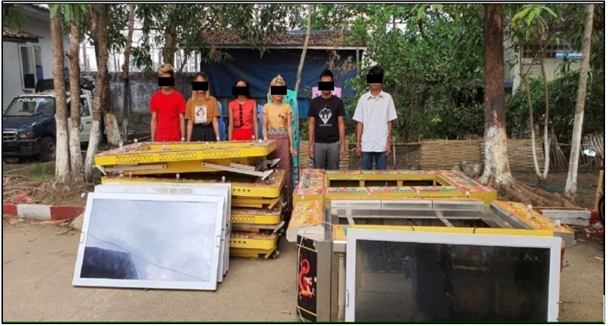 ရန်ကုန်တိုင်းဒေသကြီး၊ မရမ်းကုန်းမြို့နယ်၊ (၁) ရပ်ကွက် ဘုရင့်နောင်ပွဲရုံတန်း အခန်းအမှတ် (ဂ/၂၇/B) ရှိ Super Top (SS) ဂိမ်းဆိုင်၌ ဧပြီ ၂၉ ရက် ညနေ ၃ နာရီခွဲက ငါးမန်းဂိမ်း လောင်းကစားပြုလုပ်နေကြောင်း သတင်းအရ တိုင်းတပ်ဖွဲ့မှူးရုံးမှ တပ်ဖွဲ့ဝင်များ ပါဝင်သော ပူးပေါင်းအဖွဲ့က သွားရောက်စစ်ဆေးခဲ့သည်။