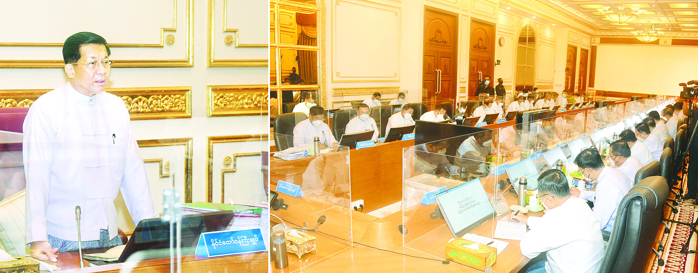 ပြည်ထောင်စုအစိုးရအဖွဲ့ အစည်းအဝေးအမှတ်စဉ် (၇/၂၀၂၂) ကို ယနေ့မွန်းလွဲပိုင်းတွင် နေပြည်တော်ရှိ နိုင်ငံတော်စီမံအုပ်ချုပ်ရေးကောင်စီဥက္ကဋ္ဌရုံး အစည်းအဝေးခန်းမ၌ကျင်းပရာ နိုင်ငံတော်စီမံအုပ်ချုပ်ရေးကောင်စီဥက္ကဋ္ဌ နိုင်ငံတော်ဝန်ကြီးချုပ် ဗိုလ်ချုပ်မှူးကြီး မင်းအောင်လှိုင် တက်ရောက်အမှာစကားပြောကြားသည်။