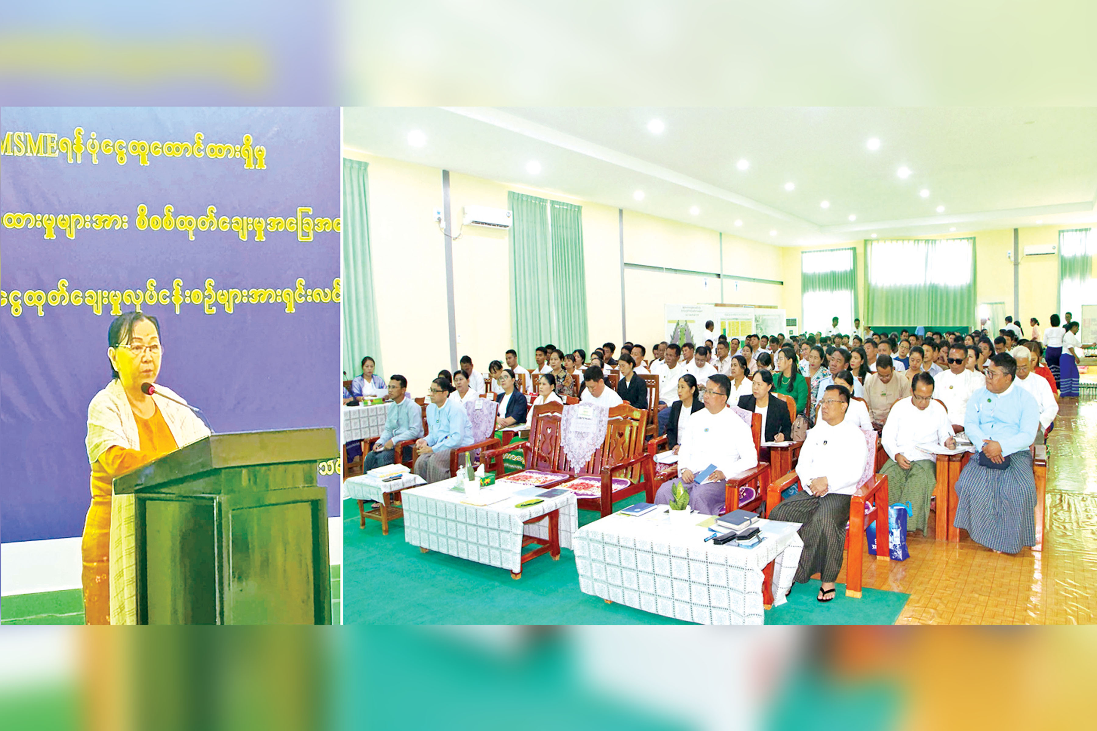 MSME ရန်ပုံငွေထူထောင်ထားရှိမှု၊ ချေးငွေလျှောက်ထားမှုများအား စိစစ်ထုတ်ချေးမှုအခြေအနေနှင့် ဆန်စက်၊ ဆီစက်ချေးငွေထုတ်ချေးမှုလုပ်ငန်းစဉ်များ ရှင်းလင်းဆွေးနွေးပွဲကို ယနေ့နံနက်ပိုင်းတွင် နေပြည်တော် ဒက္ခိဏသီရိစက်မှုဇုန် စီမံခန့်ခွဲရေးရုံးအစည်းအဝေးခန်းမ၌ကျင်းပရာ ဘဏ္ဍာရေးနှင့်အခွန်ဝန်ကြီးဌာန ဒုတိယဝန်ကြီး ဒေါ်သန်းသန်းလင်း၊ နေပြည်တော်ကောင်စီ အဖွဲ့ဝင်များ၊ MSME ရန်ပုံငွေစီမံခန့်ခွဲမှု အဖွဲ့အတွင်းရေးမှူး၊ ငွေရေးကြေးရေးကြီးကြပ်စစ်ဆေးရေး ဦးစီးဌာန ညွှန်ကြားရေးမှူးချုပ်၊ MSME ချေးငွေဆိုင်ရာလုပ်ငန်းအဖွဲ့ဥက္ကဋ္ဌ၊ မြန်မာ့စီးပွားရေးဘဏ် ဦးဆောင်ညွှန်ကြားရေးမှူး၊ MSME လုပ်ငန်းရှင်များနှင့် တာဝန်ရှိသူများ တက်ရောက်ကြသည်။