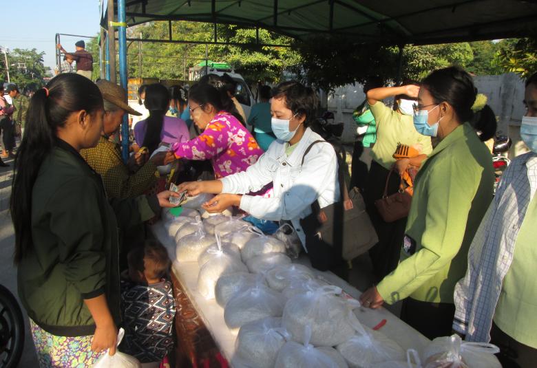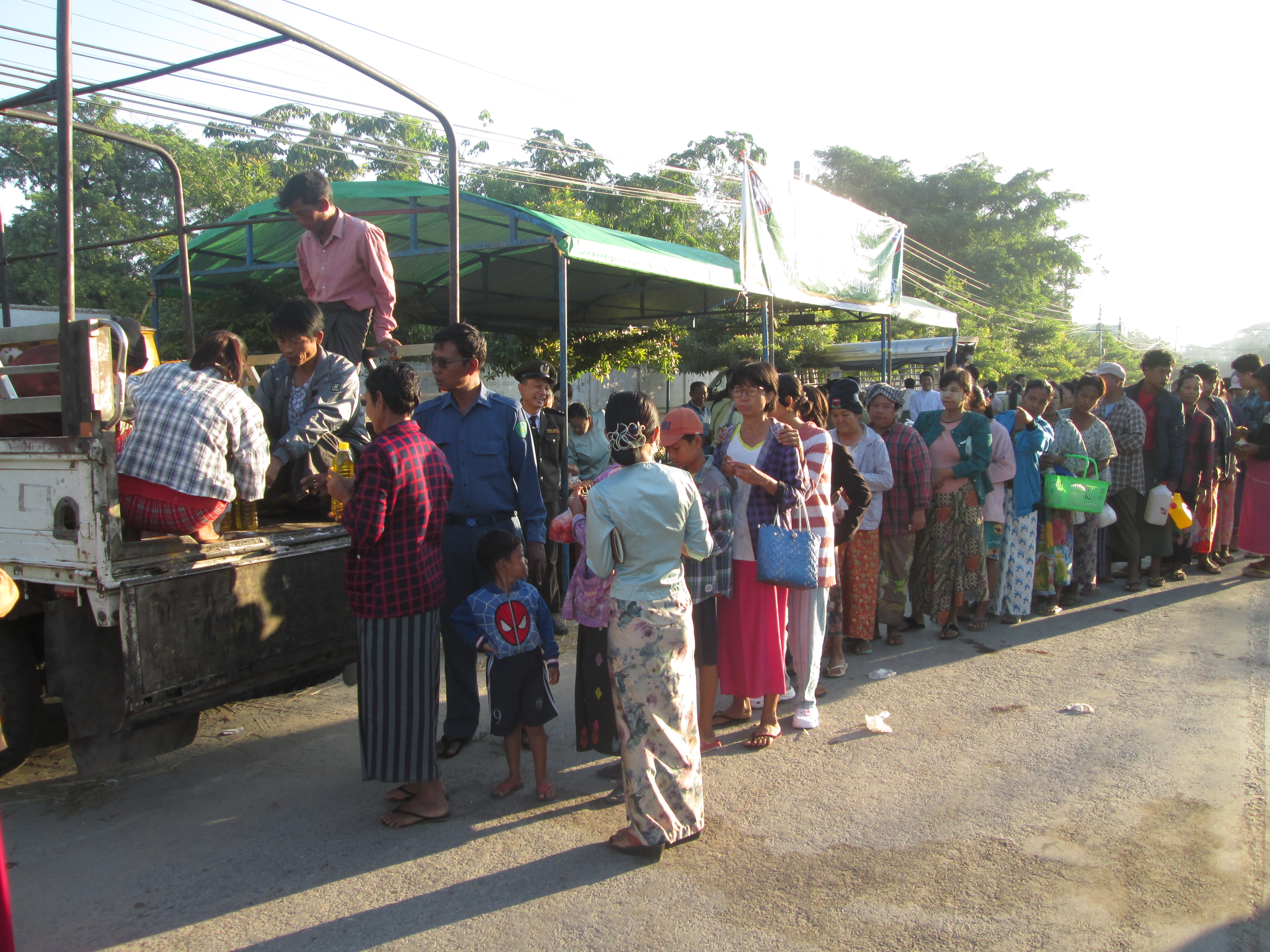 မန္တလေးတိုင်းဒေသကြီး၊ မတ္တရာမြို့နယ်တွင် အလယ်ပိုင်းတိုင်းစစ်ဌာနချုပ် သပိတ်ကျင်းတပ်နယ် အစီအစဉ်ဖြင့် ပြင်ပပေါက်ဈေးထက်သက်သာသော ဈေးနှုန်းများဖြင့် အခြေခံ စားသောက်ကုန် (၆)မျိုးကို ယနေ့ နံနက် ၇ နာရီက မတ္တရာမြို့နယ် အထက(မတ္တရာ)ကျောင်းရှေ့တွင် ရောင်းချပေးခဲ့ သည်။
