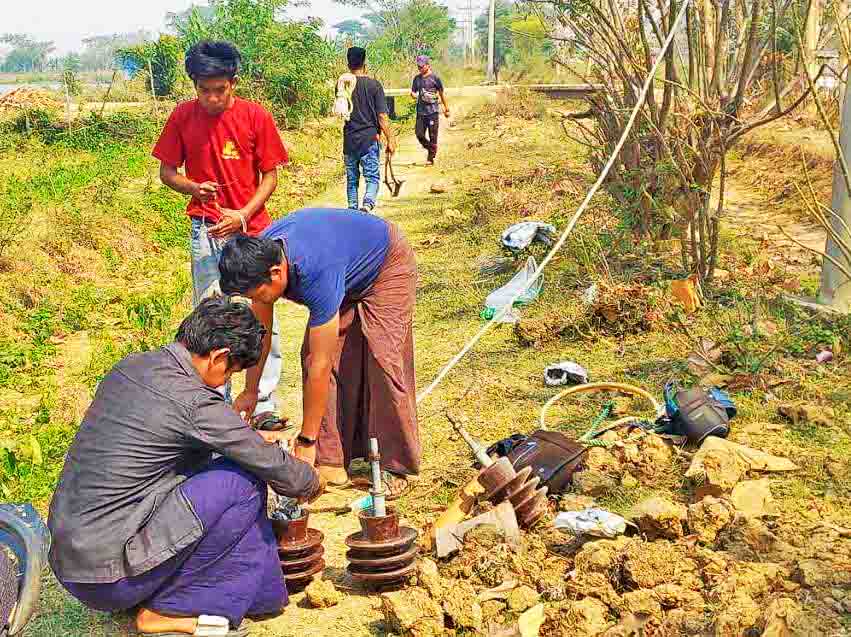 လျှပ်စစ်ကျွမ်းကျင်ဝန်ထမ်းများ ပူးပေါင်းအဖွဲ့က မြောက်ပြင် ပင်မဓာတ်အားခွဲရုံမှ မတ္တရာမြို့နယ်သို့ လျှပ်စစ်ဓာတ်အား သွယ်တန်းရယူထားသော ၃၃ ကေဗွီ ဒင်္ဂါးချောင်း ဓာတ်အားလိုင်း(၁)ရှိ (၂)ဆင့် Pin Insulator များအား (၃)ဆင့် Pin Insulator များဖြင့် အစားထိုးလဲလှယ်တပ်ဆင်ခြင်းများ ပြုလုပ်ဆောင်ရွက်ကာ ဓာတ်အားလိုင်းကြိုးများ လျော့ကျမှုမဖြစ်စေရေး ကြပ်မတ်စစ်ဆေးပြီး စနစ်တကျ ထိန်းသိမ်းပြုပြင်ခြင်းများ ဆောင်ရွက်ခဲ့ကြကြောင်း သိရသည်။