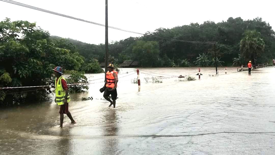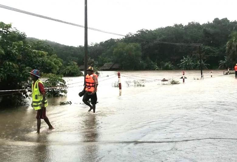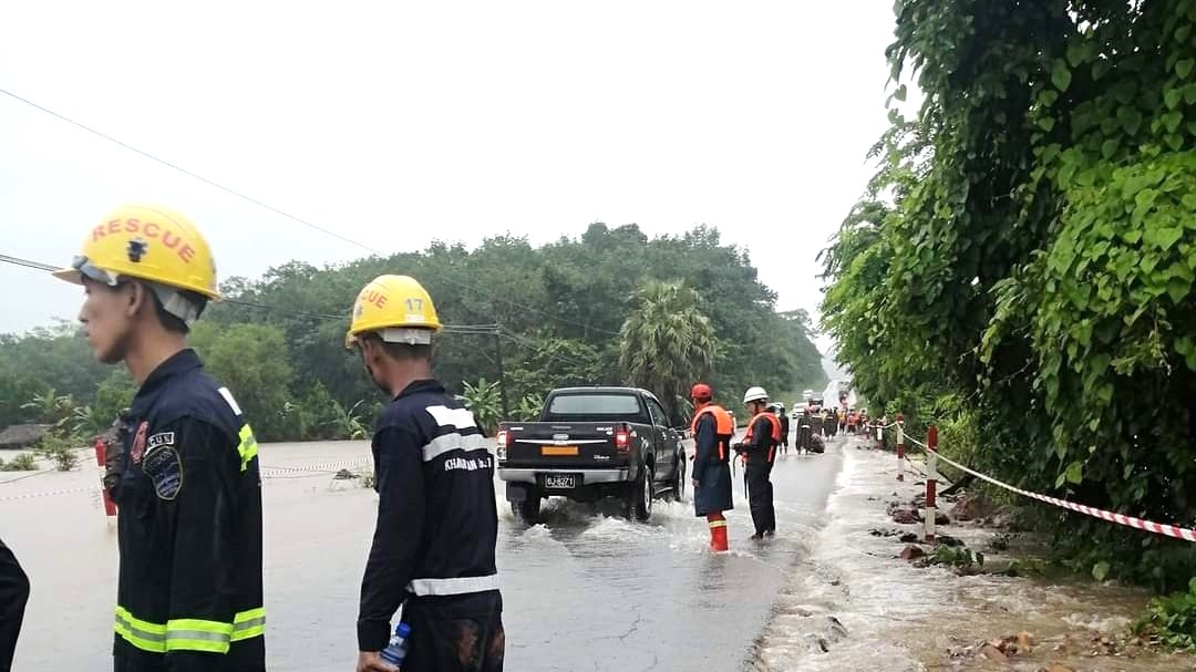 ကားလမ်းရေကျော်သည့်နေရာ၌ ရေအမြင့်ပေ တစ်ပေခန့်ရှိကြောင်း၊ ယာဉ်များ ဘေးအန္တရာယ် ကင်းရှင်းစွာ သွားလာနိုင်ရေးအတွက် မုဒုံမြို့နယ် စီမံအုပ်ချုပ်ရေးအဖွဲ့ ဥက္ကဋ္ဌ  ဦးပြည်သိမ်းနှင့် အဖွဲ့ဝင်များ၊ တပ်ရင်းမှူး ဒုတိယဗိုလ်မှူးကြီးနေသူရိန်နှင့် တပ်ဖွဲ့ဝင်များ၊ ရဲတပ်ဖွဲ့ဝင်များ၊ ကျေးရွာ အုပ်ချုပ်ရေးမှူးနှင့် အဖွဲ့ဝင်များ၊ ကျေးရွာနေပြည်သူများနှင့် လူမှုကူညီရေးအသင်း အဖွဲ့ဝင်များ ပူးပေါင်းကာ ယဉ်များ၊ ဆိုင်ကယ်များ ဖြတ်သန်းမောင်းနှင်မှုကို စောင့်ကြည့်ကူညီပေးလျက်ရှိပြီး ရေဆက်လက်မြင့်တက်လာပါက အန္တရာယ်ကင်းရှင်းစေရန် ဖြတ်သန်းသွားလာမှုကို ခေတ္တ ဆိုင်ငံ့သွားမည်ဖြစ်ကြောင်း သိရှိရသည်။