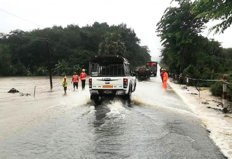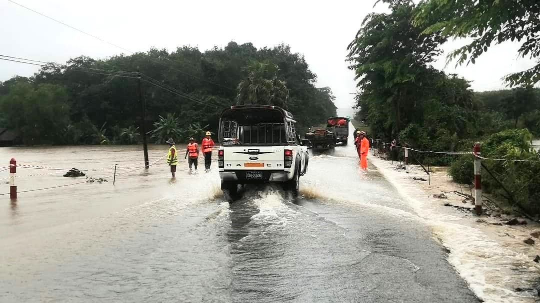 မွန်ပြည်နယ်၊ မုဒုံမြို့နယ်၊ နှီးပဒေါကျေးရွာ၊ မော်လမြိုင်-သံဖြူဇရပ်ကားလမ်း၊ မိုင်တိုင်အမှတ် (၃၅/၁) နှင့် (၃၅/၂)အကြား၌ တောင်ကျရေများ စီးဆင်းမှုကြောင့် ဩဂုတ် ၁၆ ရက် နံနက်ပိုင်းမှစ၍   ကားလမ်းရေကျော်မှု ဖြစ်ပွားလျက်ရှိသည်။