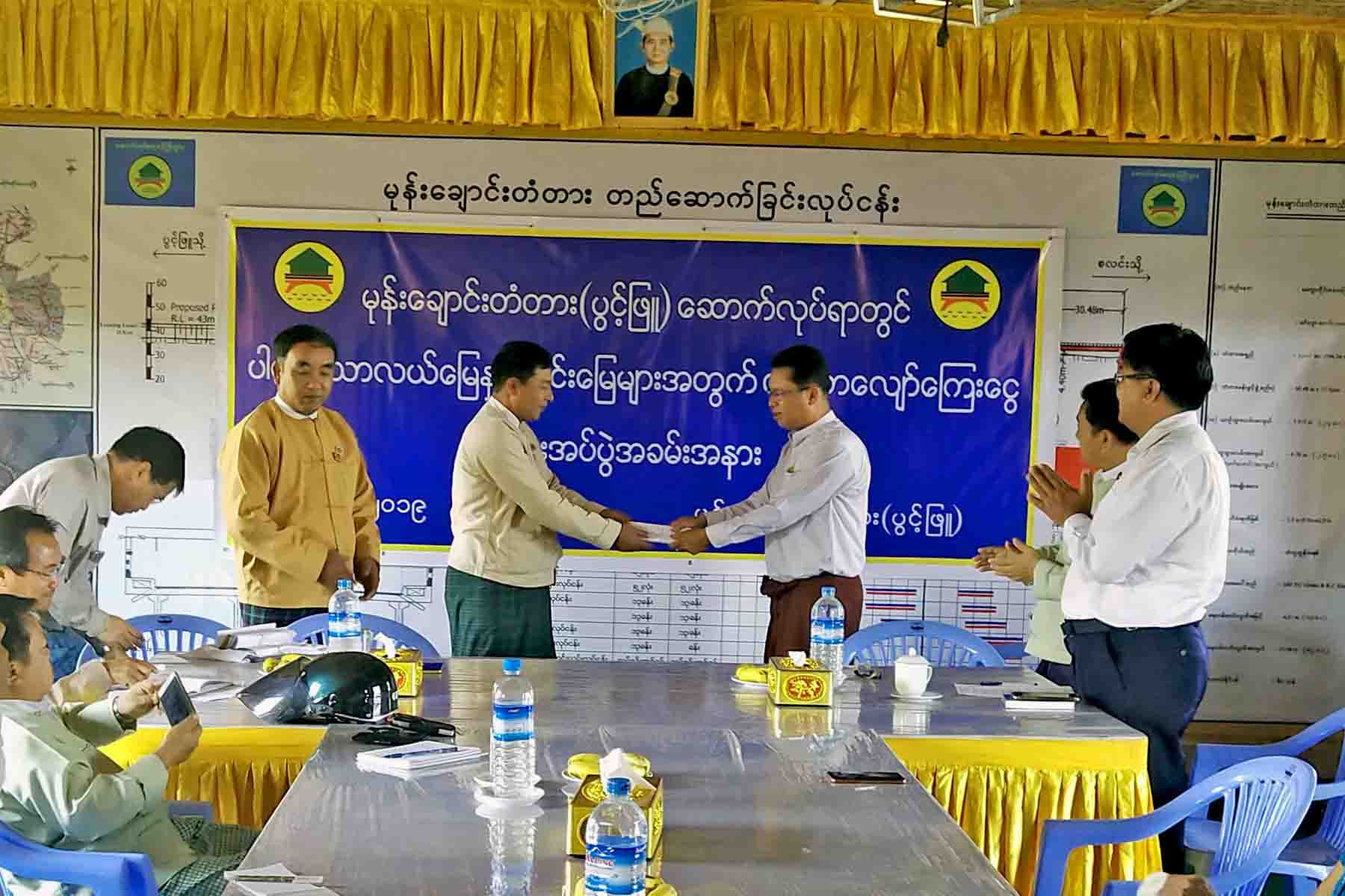 မကွေးတိုင်းဒေသကြီး၊ ပွင့်ဖြူမြို့နယ် မုန်းချောင်းတံတား ဆောက်လုပ်ရာတွင်ပါဝင်ခဲ့သော လယ်မြေနှင့် ကိုင်းမြေများအတွက် သီးနှံနစ်နာကြေးနှင့် မြေယာလျော်ကြေးငွေများ ပေးအပ်ပွဲကို ဧပြီ ၄ ရက်၊ မွန်းလွဲ ၂ နာရီခွဲ အဆိုပါ မုန်းချောင်း တံတားအနီး တံတားတည်ဆောက်ရေး ရှင်းလင်းဆောင် ခန်းမတွင် ကျင်းပပြုလုပ်ခဲ့ကြောင်း သိရသည်။