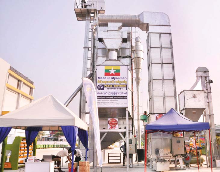စပါးထည့်ချိန်နာရီဝက်၊ အခြောက်ခံ ချိန်နာရီဝက်ဖြင့် စပါး၊ ပဲ၊ ပြောင်းနှင့် သီးနှံမျိုးစုံကို တစ်နာရီလျှင် တန် ၃၀ ထုတ်လုပ်နိုင်သည့် မြန်မာပြည်မှ ကိုယ်ပိုင်တီထွင် ထုတ်လုပ်သော အခြောက်ခံစက်ကို ရန်ကုန်မြို့ သာကေတမြို့နယ် Fortune Plaza ရှိ မြန်မာအပြည်ပြည်ဆိုင်ရာ လယ်ယာသုံး စက်ကိရိယာပြပွဲတွင် ဖွင့်လှစ်ပြသလျက်ရှိရာ ဆန်စက်ပိုင်ရှင်များနှင့် တောင်သူများ အထူးစိတ်ဝင်စားလျက်ရှိသည်။