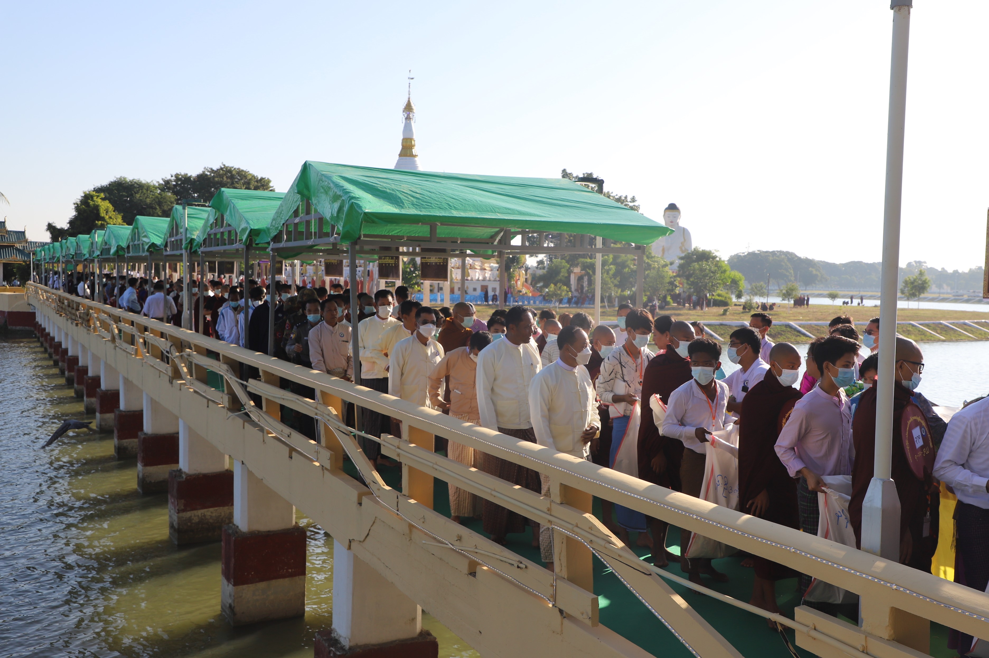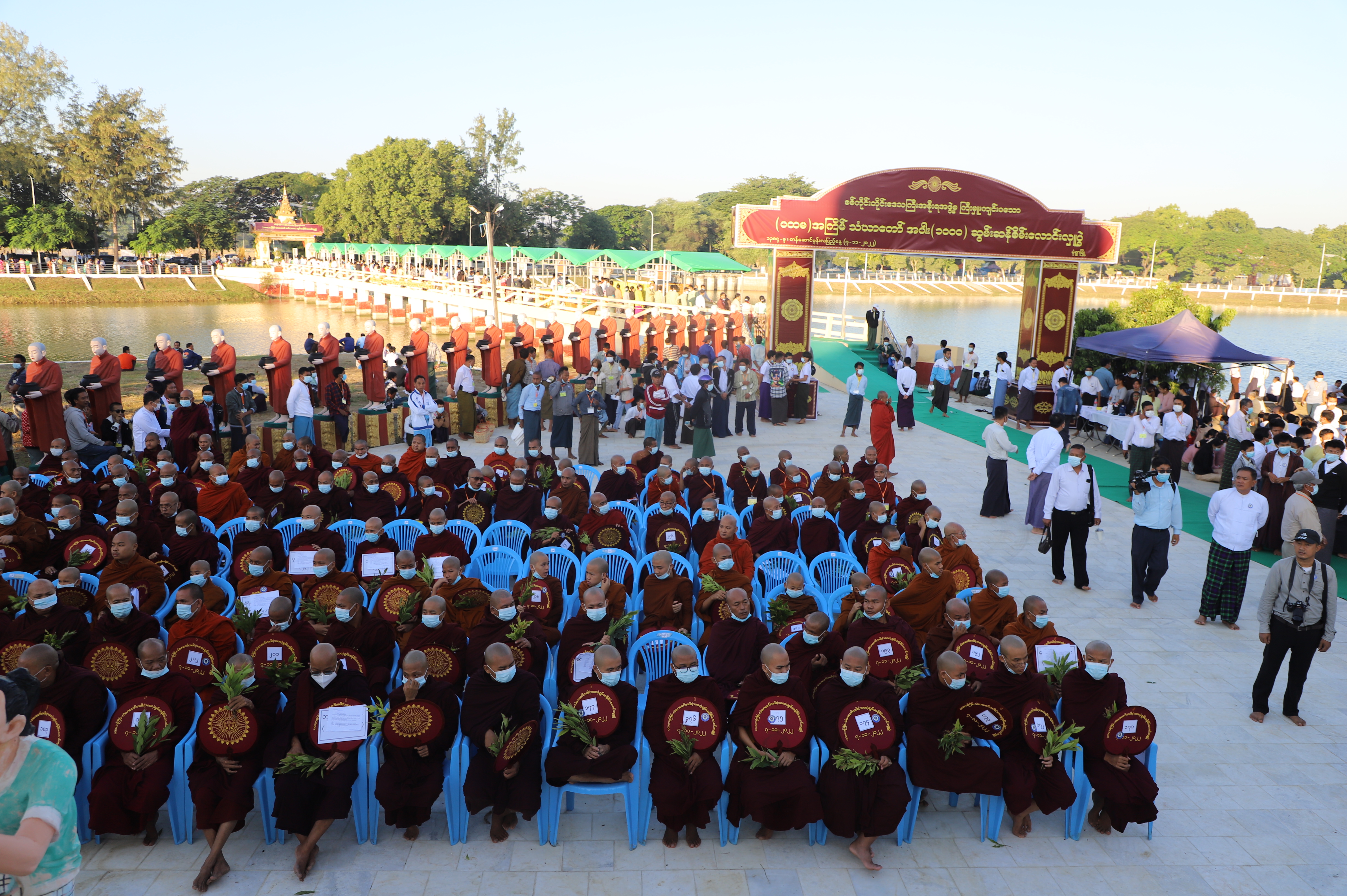 ဆက်လက်ပြီး စစ်ကိုင်းတိုင်းဒေသကြီး အစိုးရအဖွဲ့မှ ကြီးမှူးကျင်းပသော ပထမအကြိမ် သံဃာတော်အပါး ၁၀၀၀ ဆွမ်းဆန်စိမ်းလောင်းလှူပွဲ အခမ်းအနားကို ရာပြည့်ကပ်ကျော်စေတီ တော်မြတ်ကြီးရှိ အရှေ့ဘက်ကန်သာယာ ကန်ဘောင်တွင် ကျင်းပရာ တိုင်းဒေသကြီးဝန်ကြီး ချုပ်နှင့်ဇနီး၊ တိုင်းမှူးနှင့်ဇနီးနှင့် တိုင်းဒေသကြီး တရားသူကြီးချုပ်၊ တိုင်းဒေသကြီး အစိုးရ အဖွဲ့ဝင်များနှင့်ဇနီးများ၊ တိုင်းဒေသကြီး/ခရိုင်/မြို့နယ်အဆင့် ဌာနဆိုင်ရာဝန်ထမ်းများ၊ အလှူရှင် များနှင့် လုပ်ငန်းရှင်များက သံဃာတော်များနှင့် သီလရှင်ဆရာလေးများအား ဆွမ်းဆန်စိမ်းများ လောင်းလှူကြသည်။